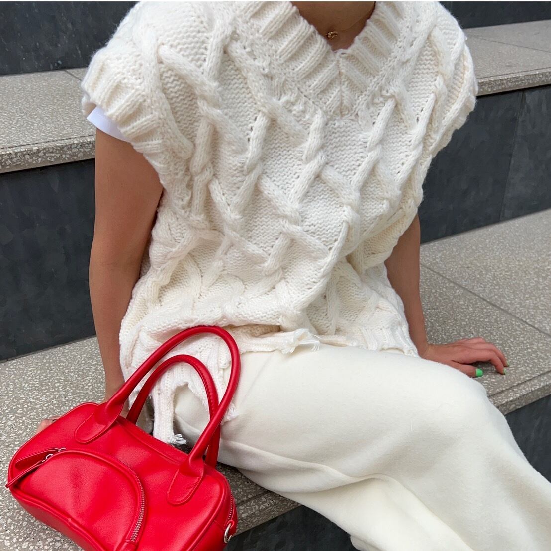 ニットベスト:着丈55cm、肩幅47cm、バスト118cm、袖口18cm