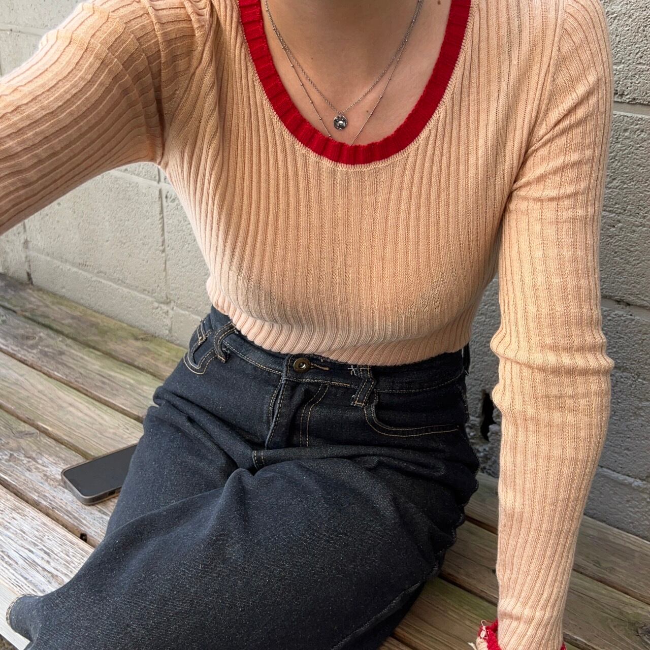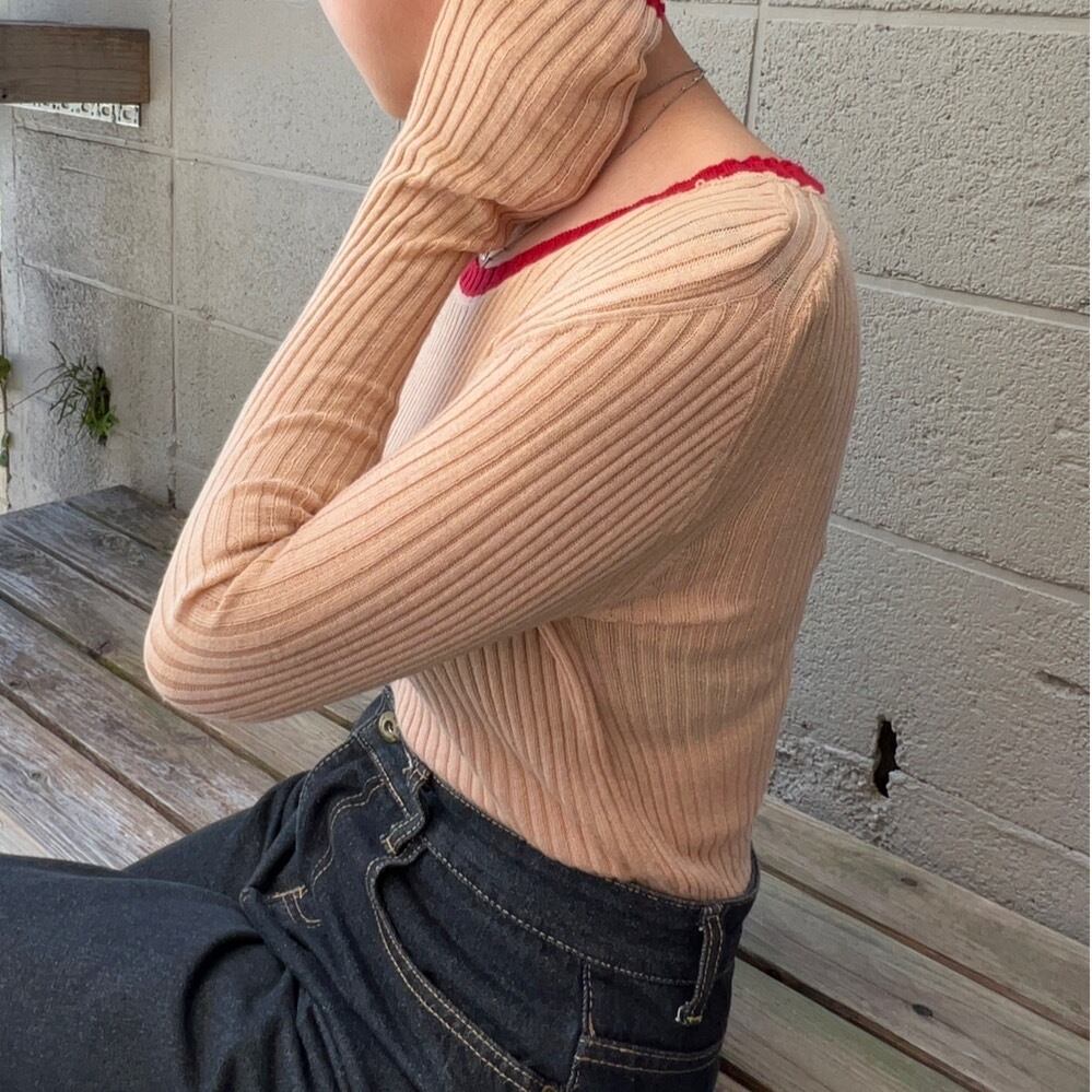 袖丈が長いので、トレーナーの下にレイヤードしてチラ見せする「インナー」としての使い方も良さそう♡