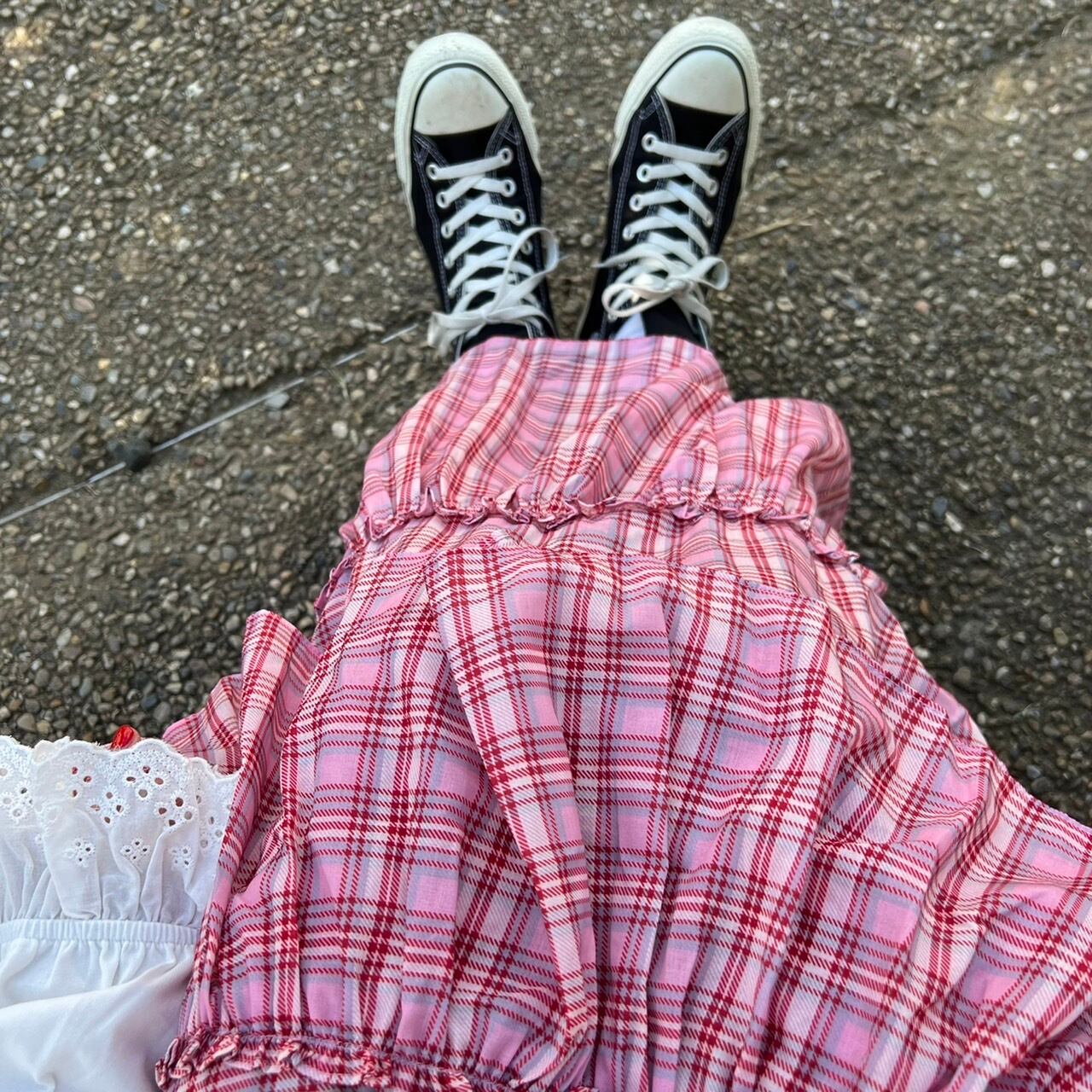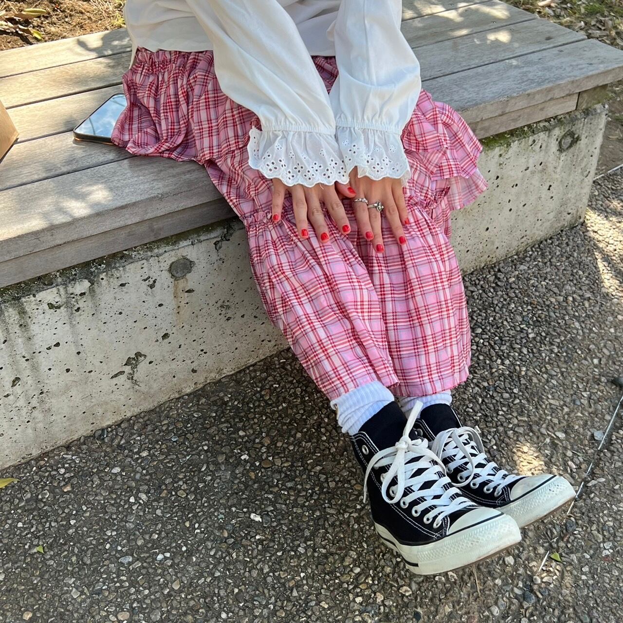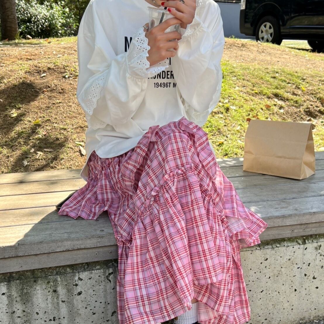 ・チェック柄ティアードスカートLN01463:総丈82cm、ウエスト62cm
