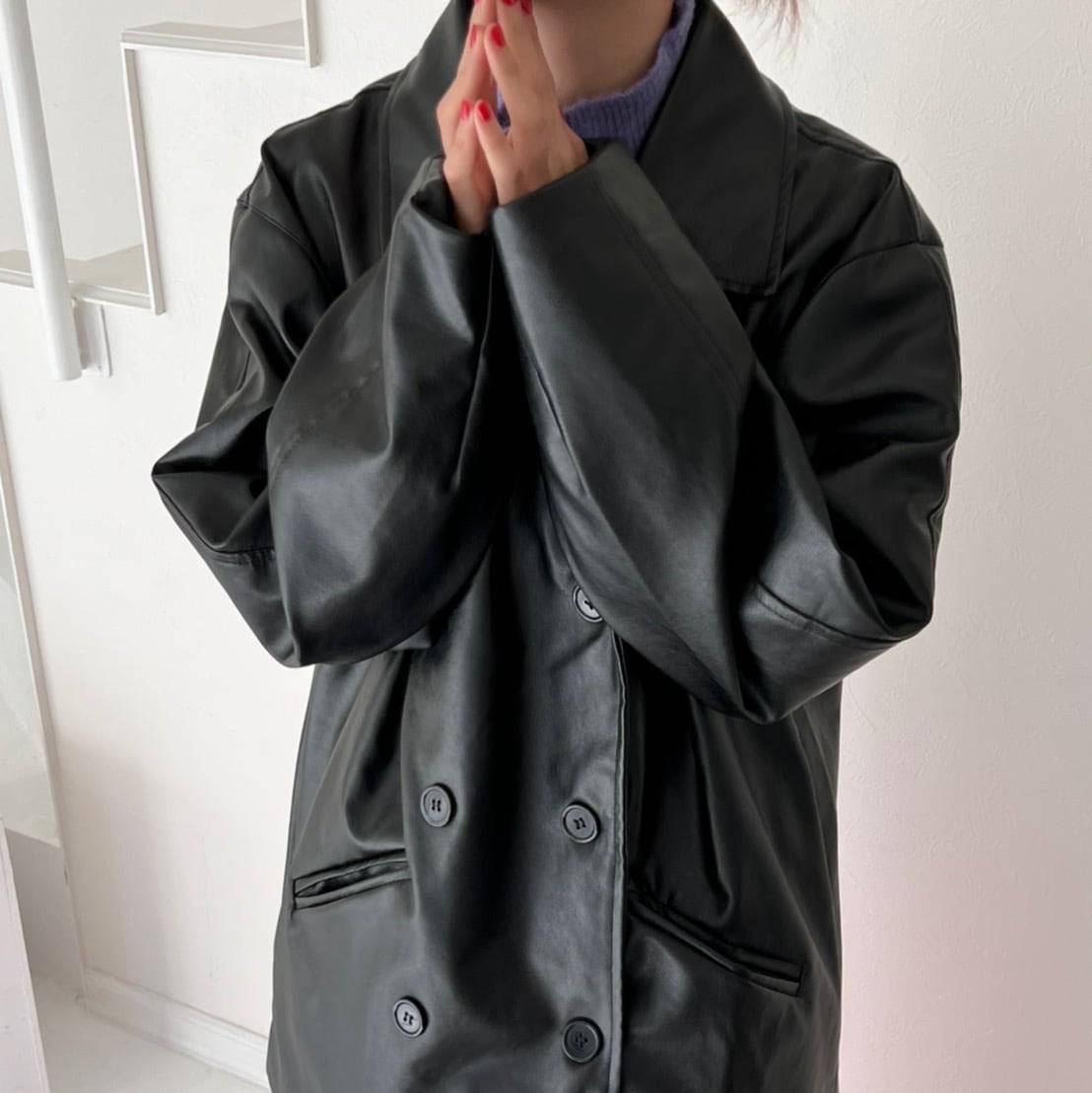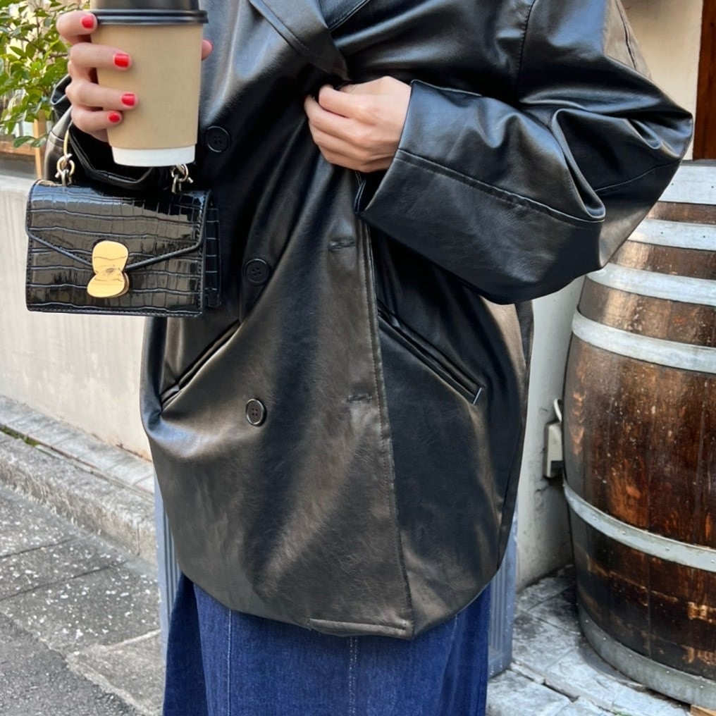 フェイクレザーオーバーサイズダブルジャケット_LN01608