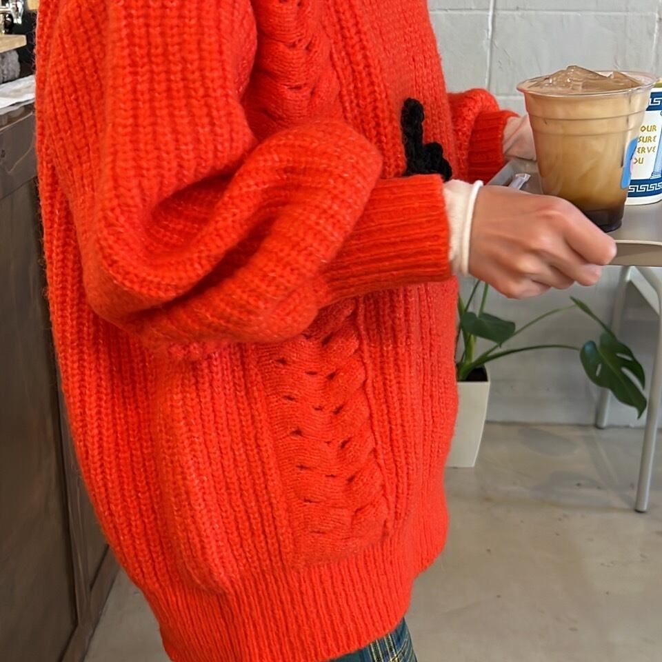 ボリュームスリーブフラワーモチーフニットセーター_LN01626