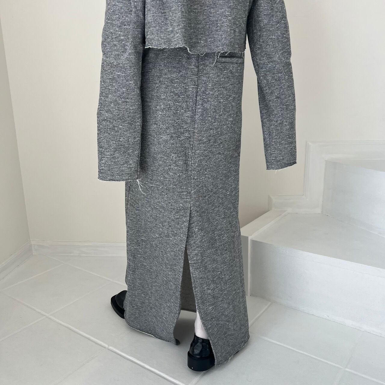 【2023年SSアイテム】楽ちんなスウェット素材ですが、切りっぱなしの裾やスリットはデザイン性があり、こなれた印象に。別々での着用も使い勝手が良く、春先のお出かけ着としておすすめ♡