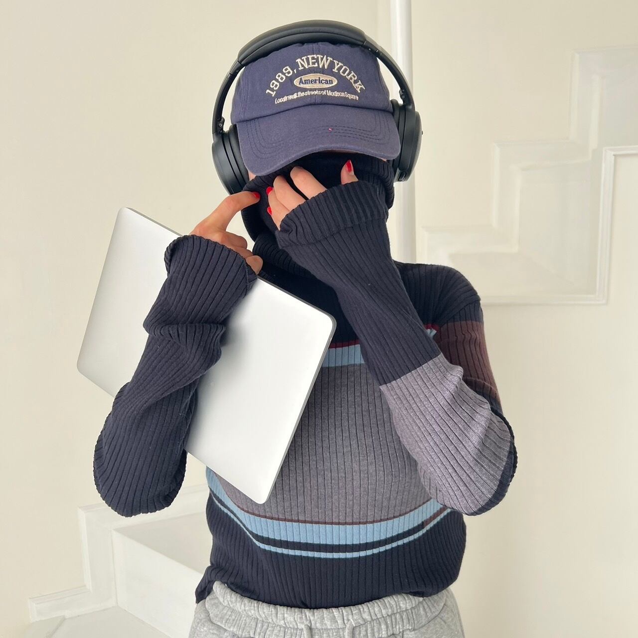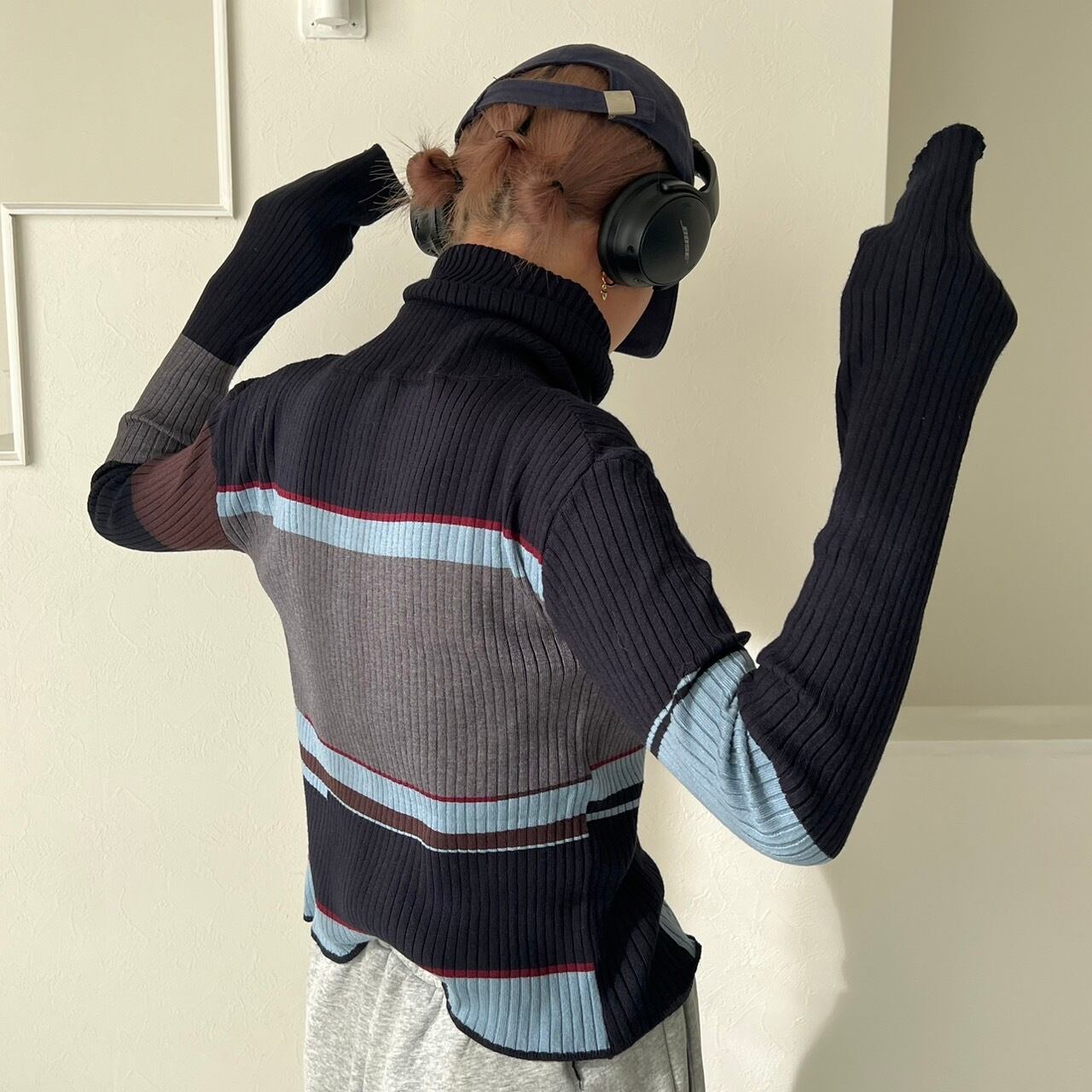 首周りや袖丈が長く、華奢見え効果が期待できるニットタートル♡