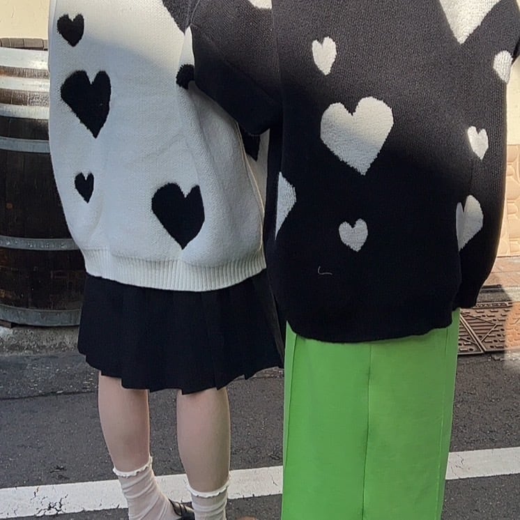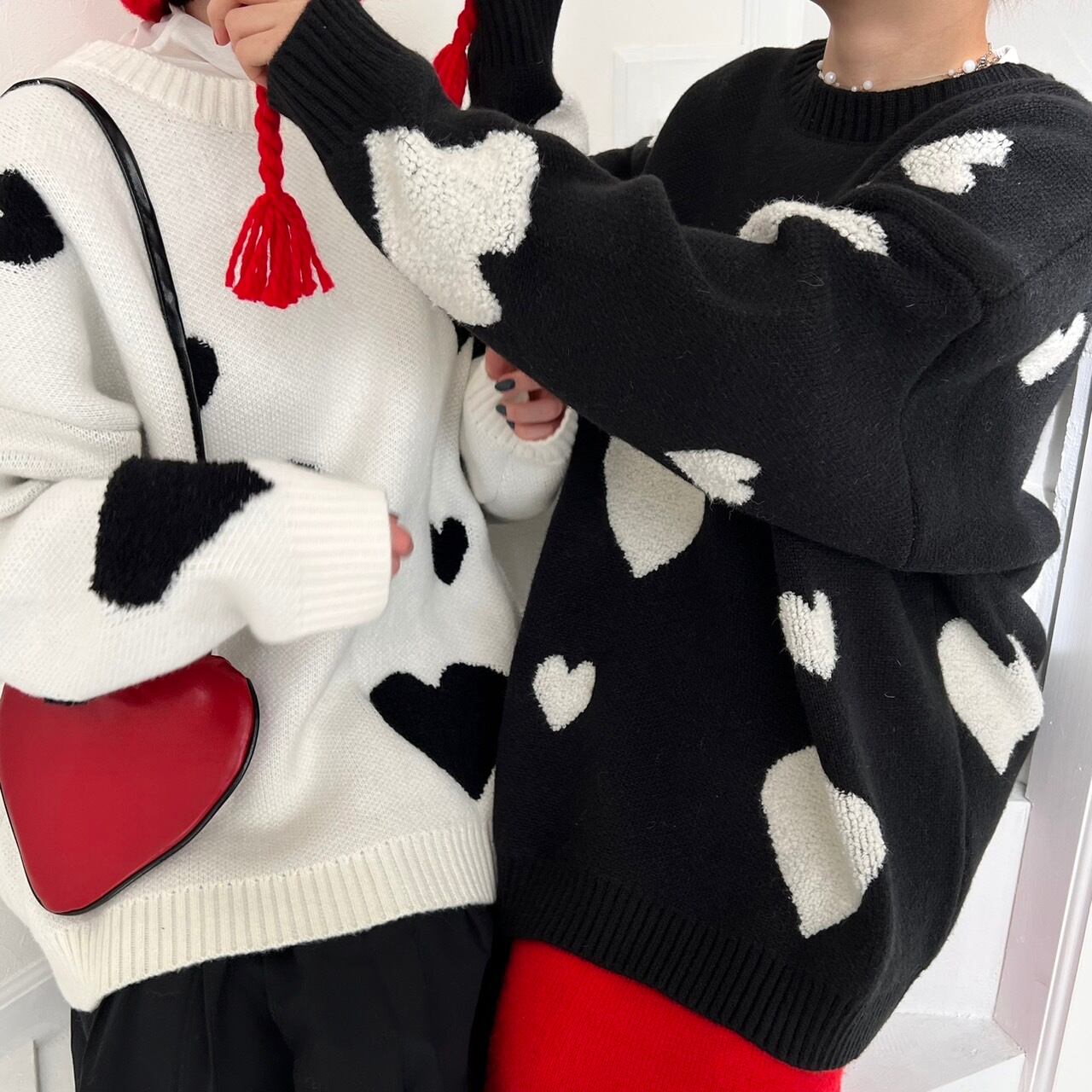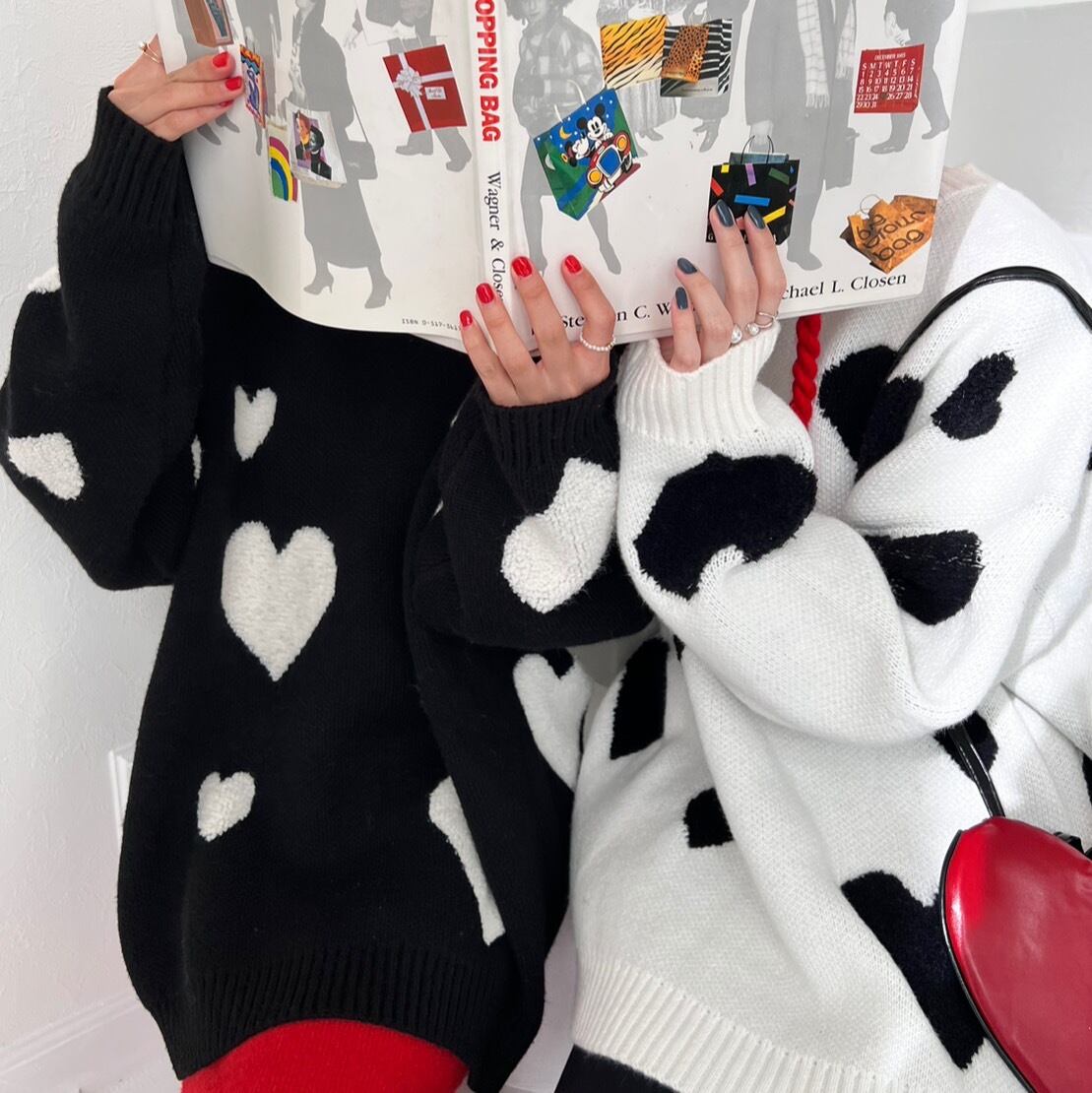 モノトーンハート柄ボリュームニットトップス_LN01749