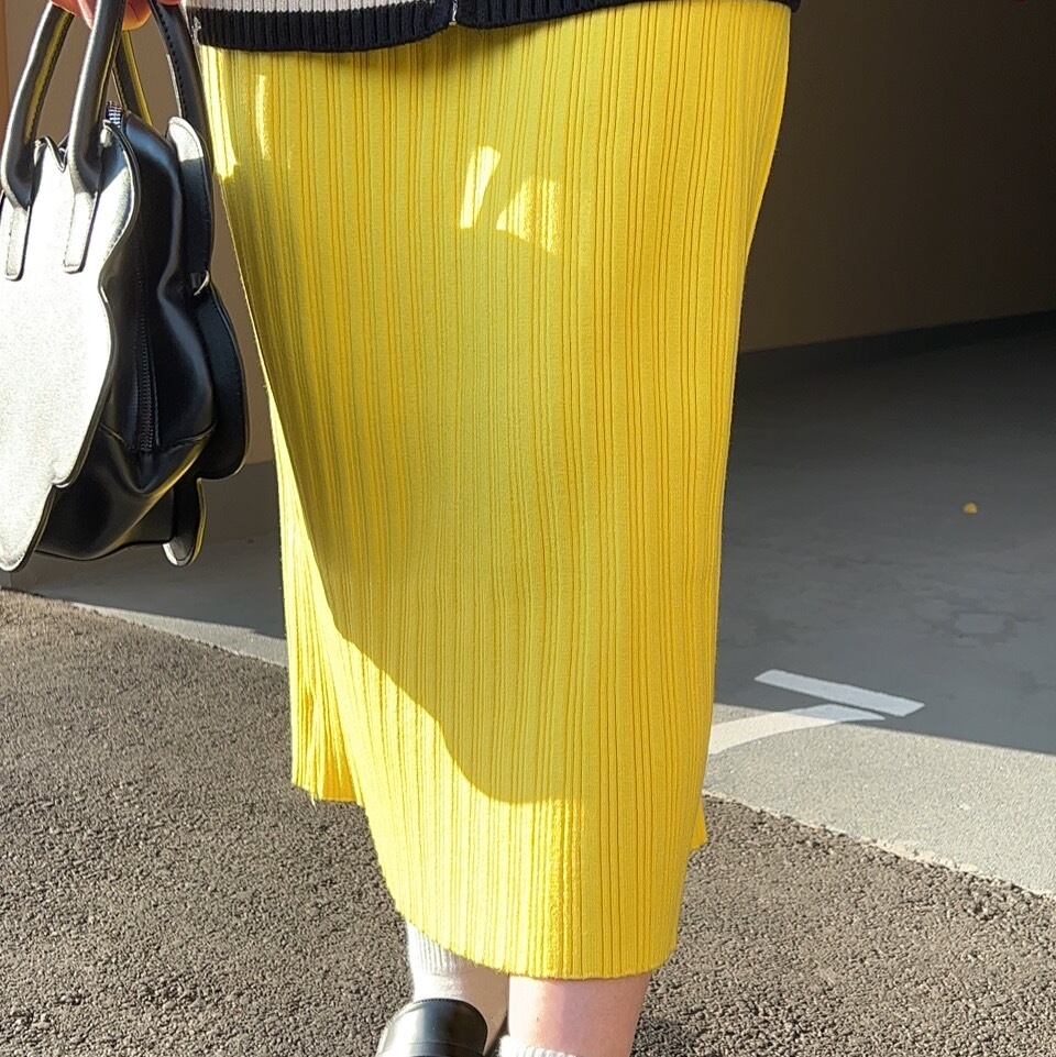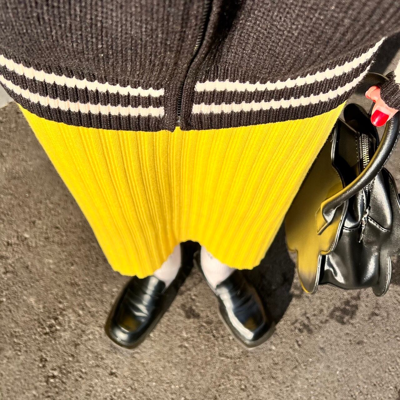 スタイルが華やかになるパキッとイエローのニットスカートが登場☺︎