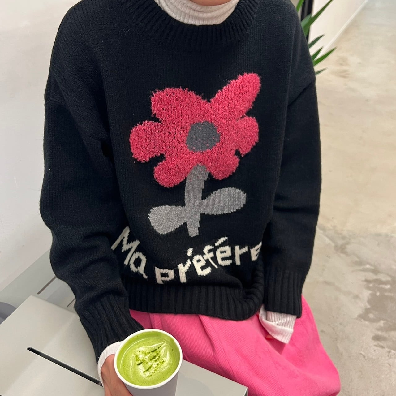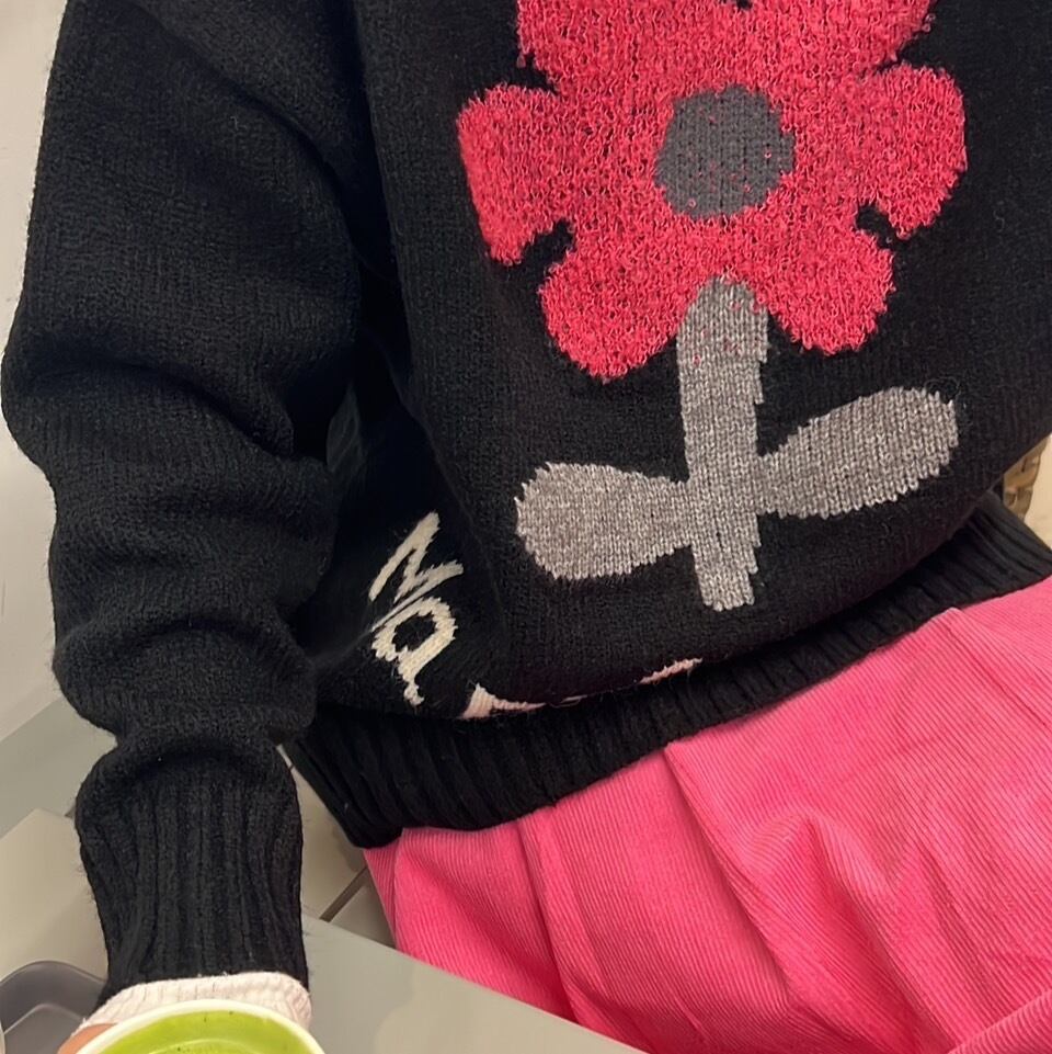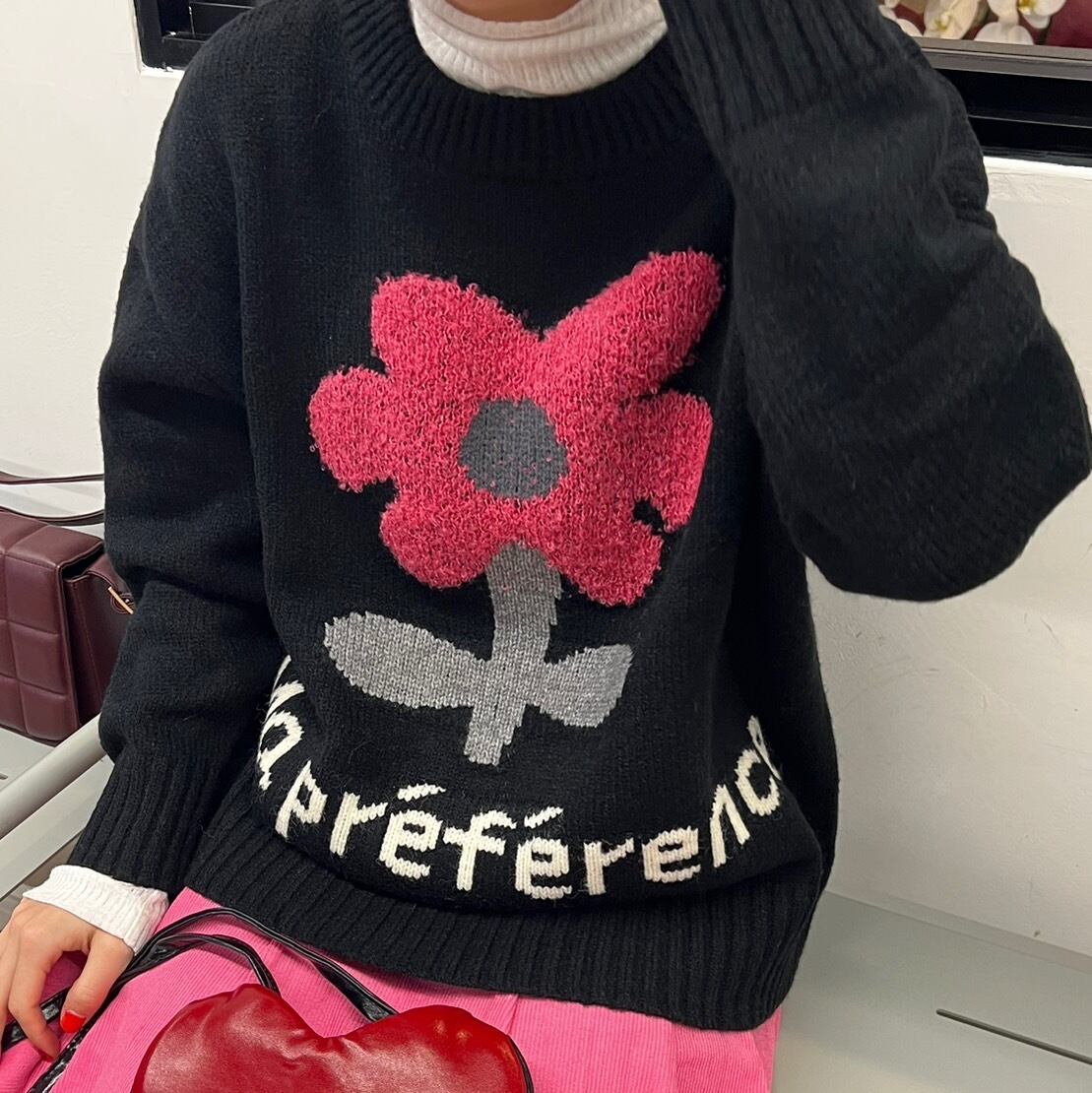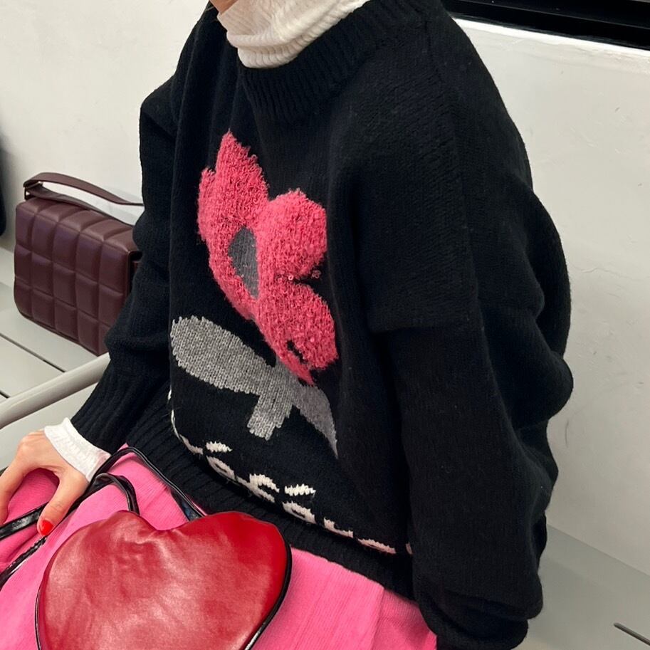 【国内より3営業日前後で発送】浮き出て見えるお花がキュートな大人ガーリーニット♡