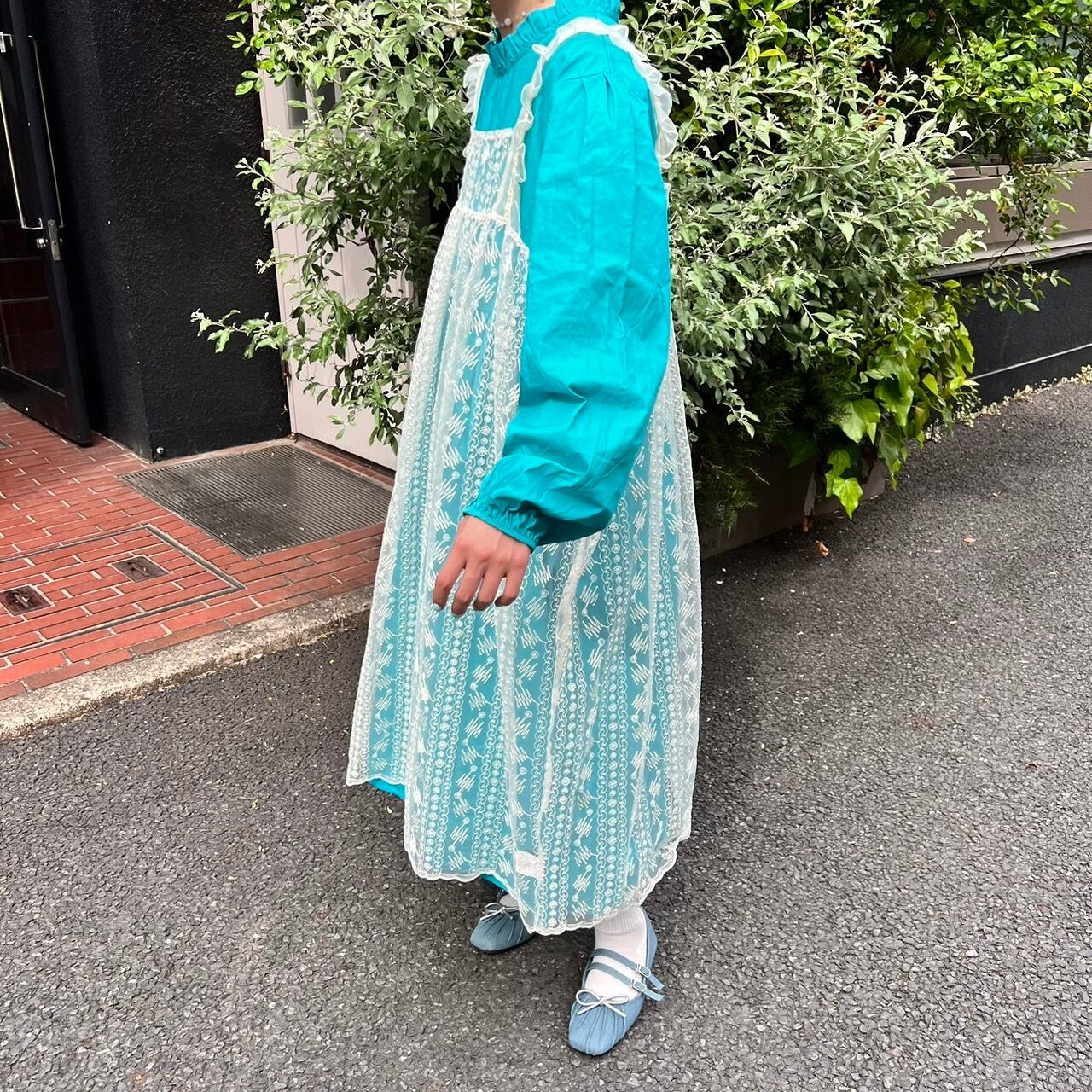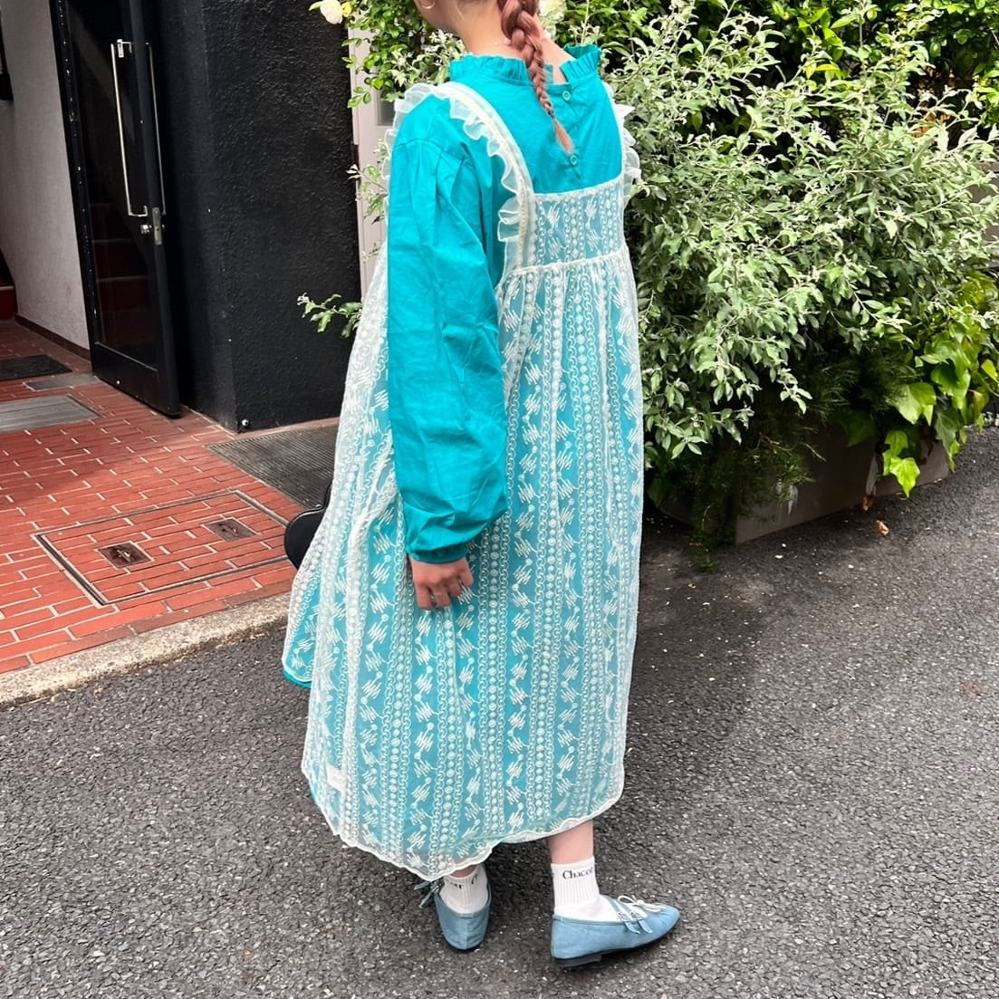 シアーのレースワンピと、バックスタイルがボタンでキュートなフリルワンピの、レイヤードセットが登場♡