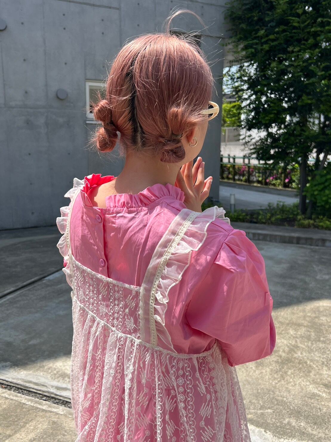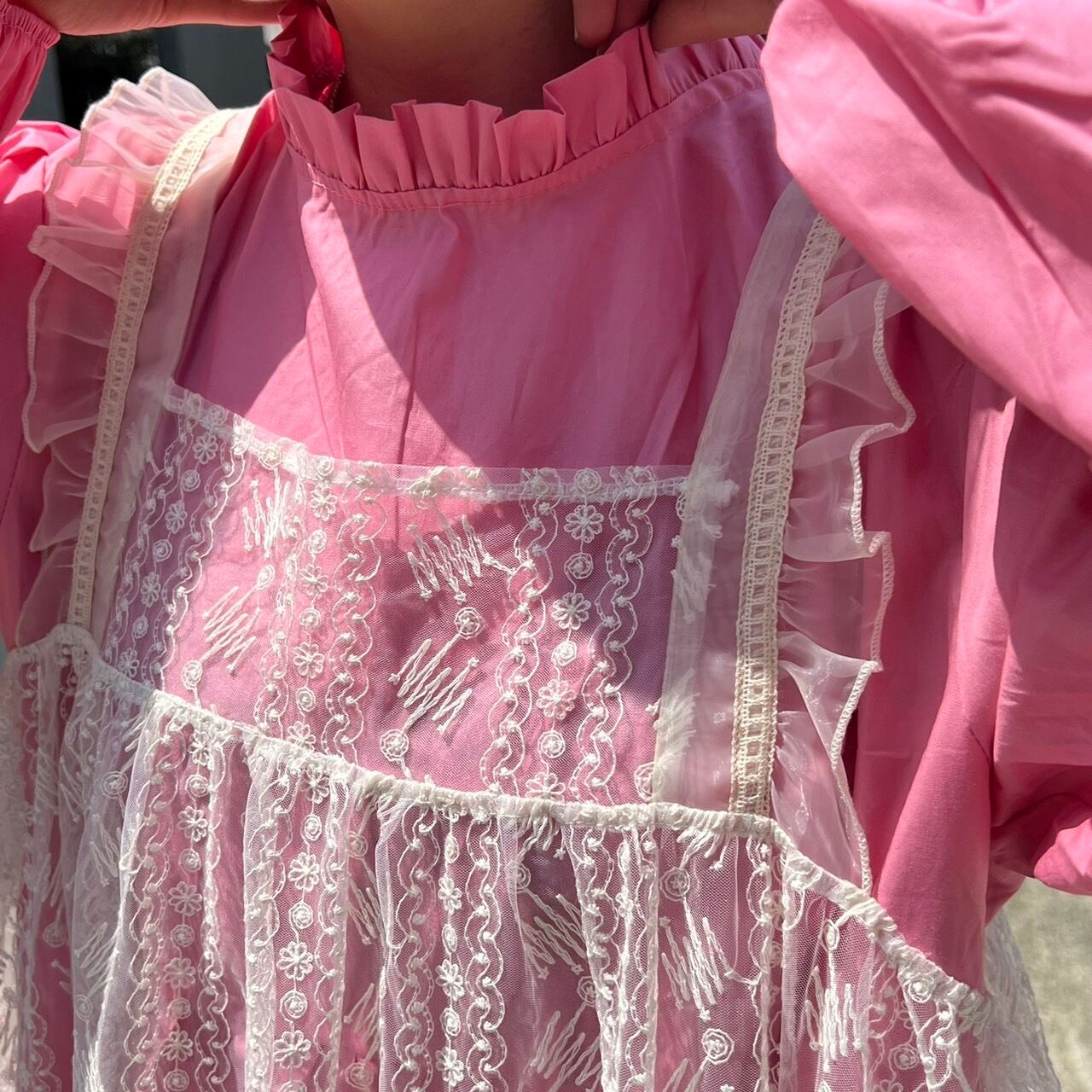 シアーのレースワンピと、バックスタイルがボタンでキュートなフリルワンピの、