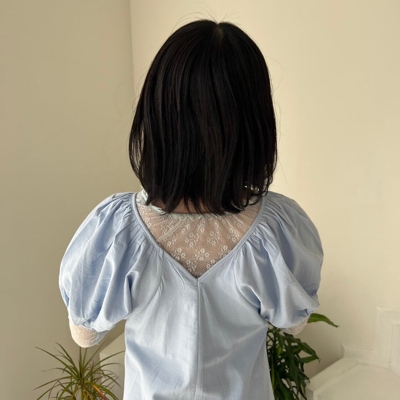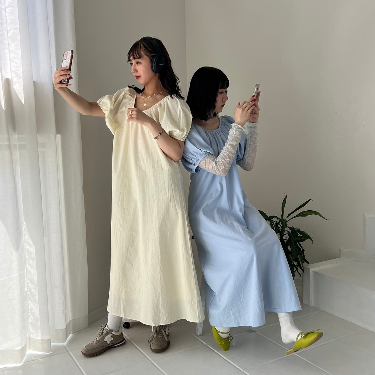 パフショルダーのガーリーさと、大人な雰囲気が出るVネック、ロング丈でバランスの取れた大人ワンピが完成しました☺︎