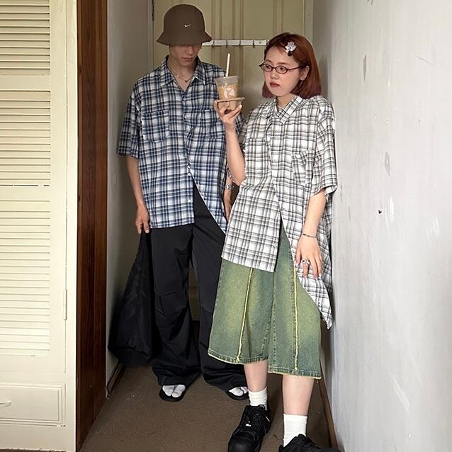 【ユニセックス】半袖のビッグシルエットのチェックシャツが登場♡