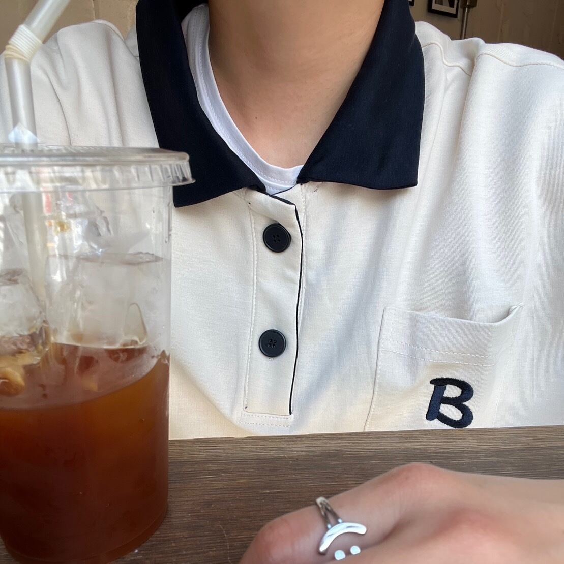 大きめのポロ風TEEに、ゴムで楽々なスリットスカートのセットアイテムです☺︎