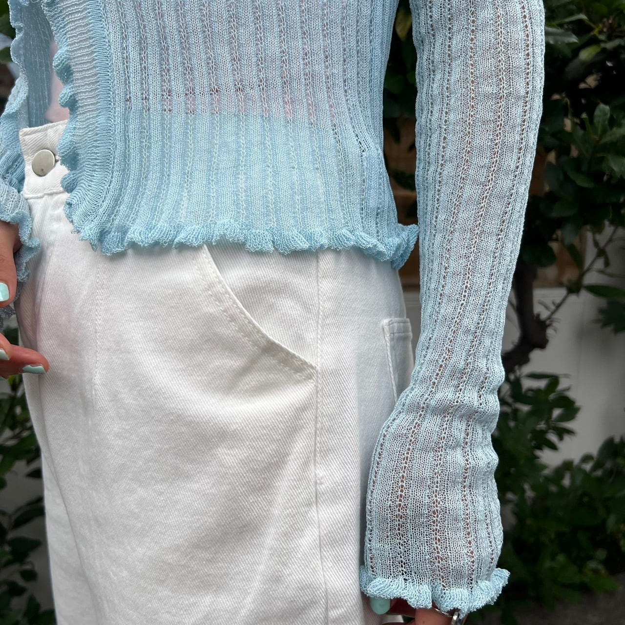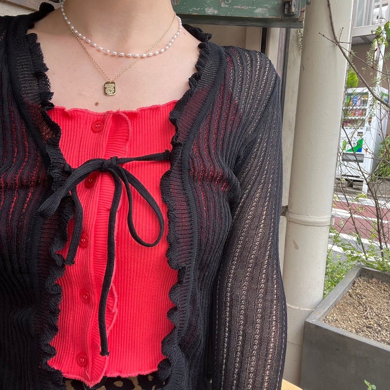 リブニットシアーフリルリボンカーディガン_LN02233