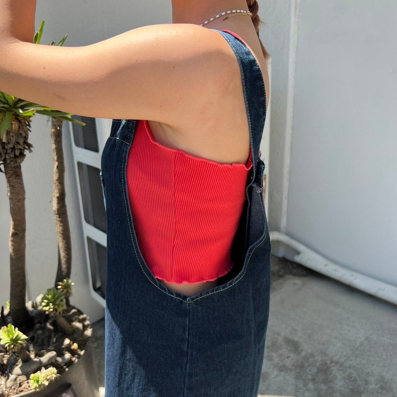 バックスリットデニムサロペットワンピース_LN02287