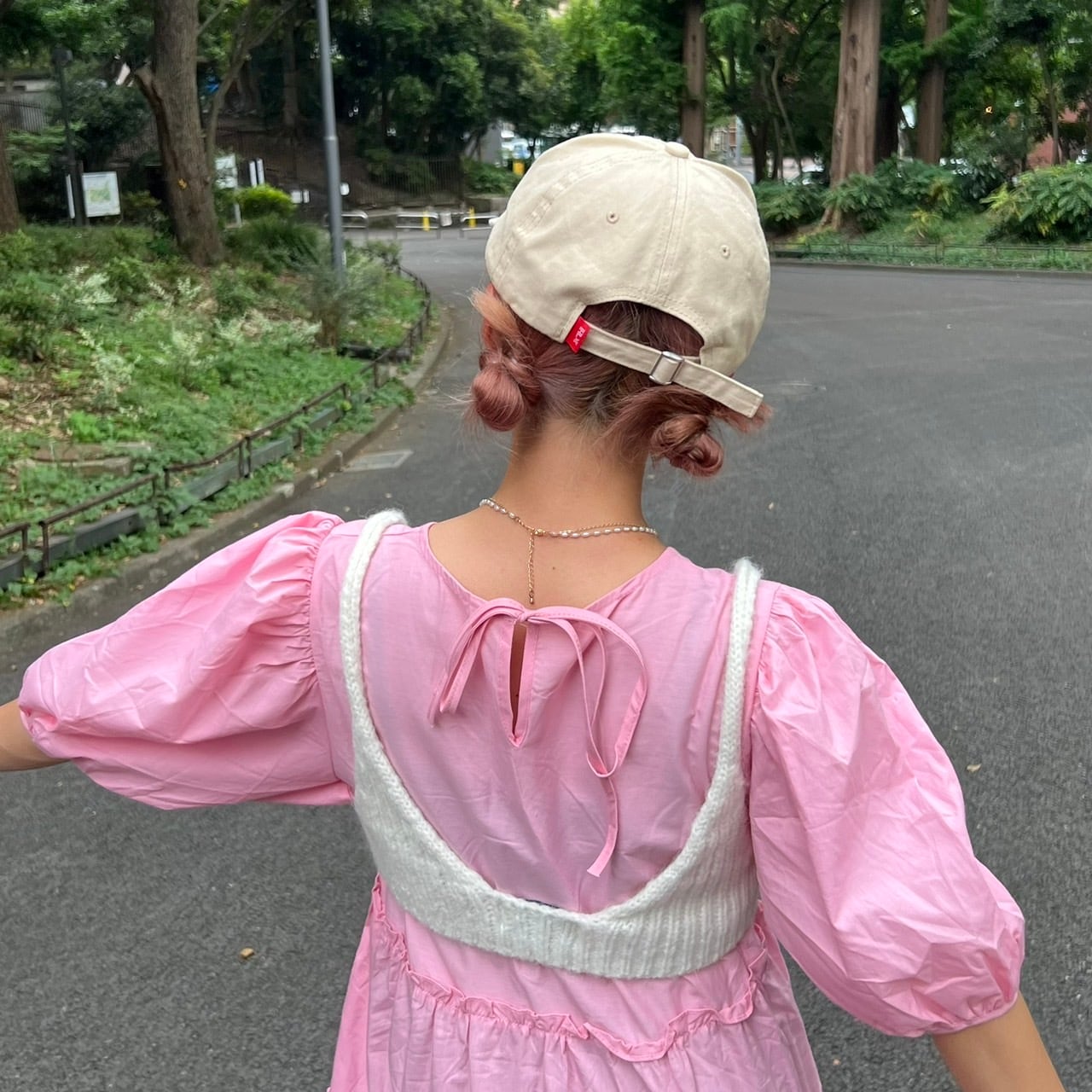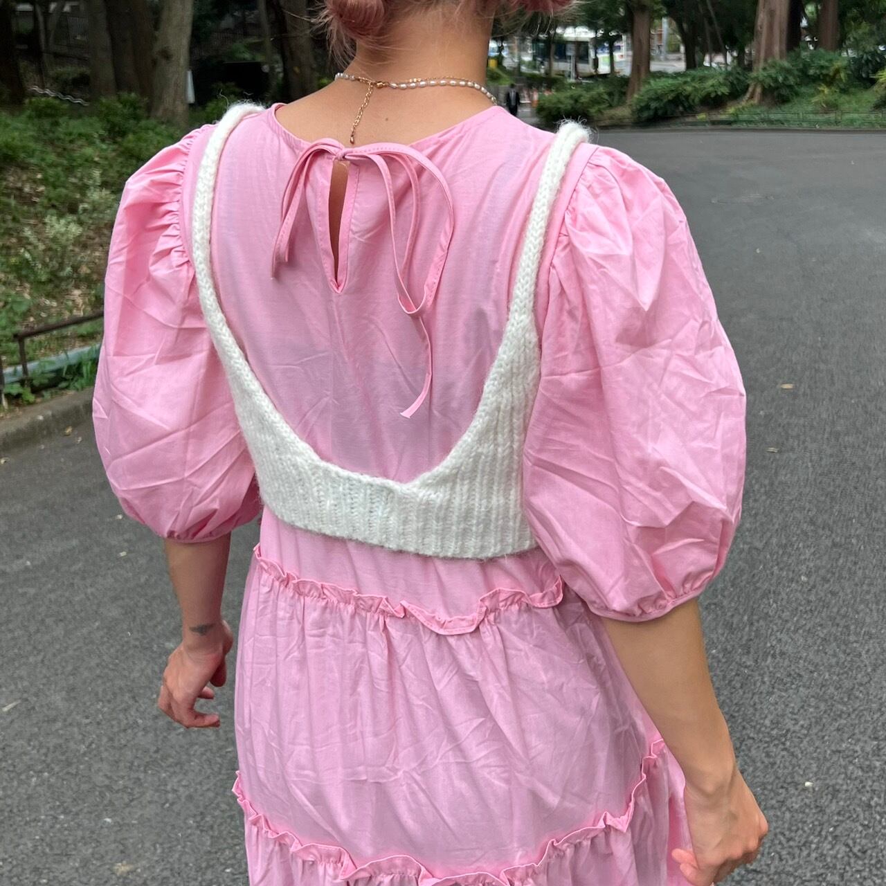 【pink】バックリボンパフショルダーティアードワンピース_LN02286