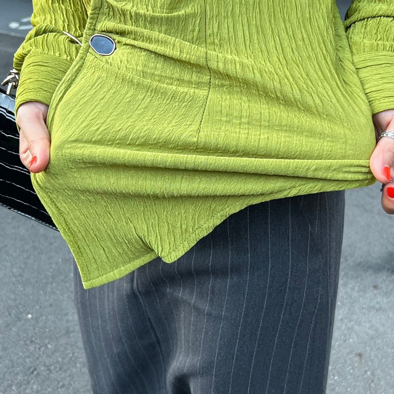ウエストのギャザーや、サイドのラウンドカットで、ウエストが細身えする形です★