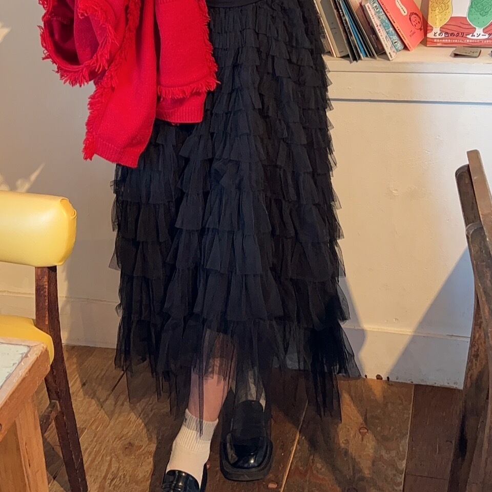 ウエストから下はフリルたっぷりのティアードスカートでちょっぴりの透け感が女らしさをアップ♡