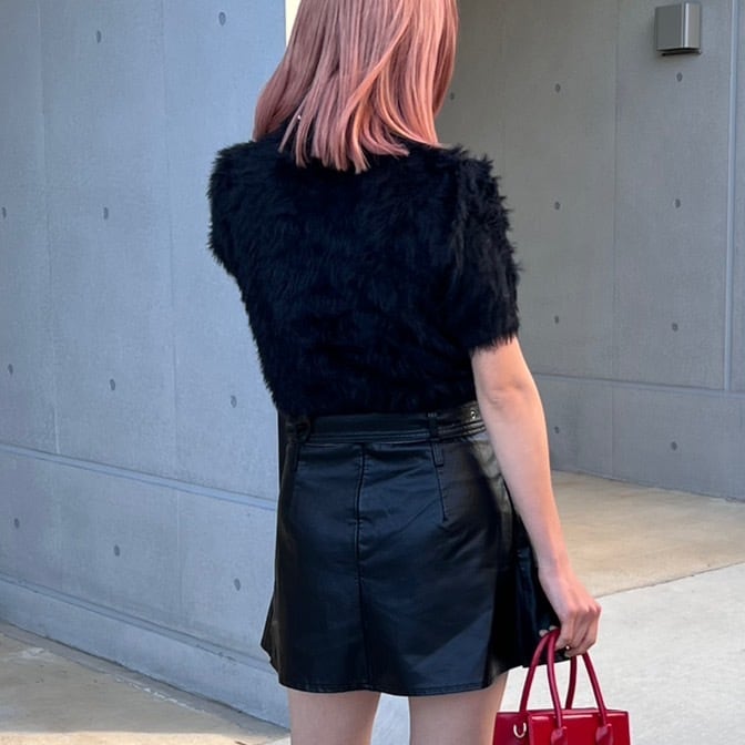 半袖タートルネックファーニット_LN02614