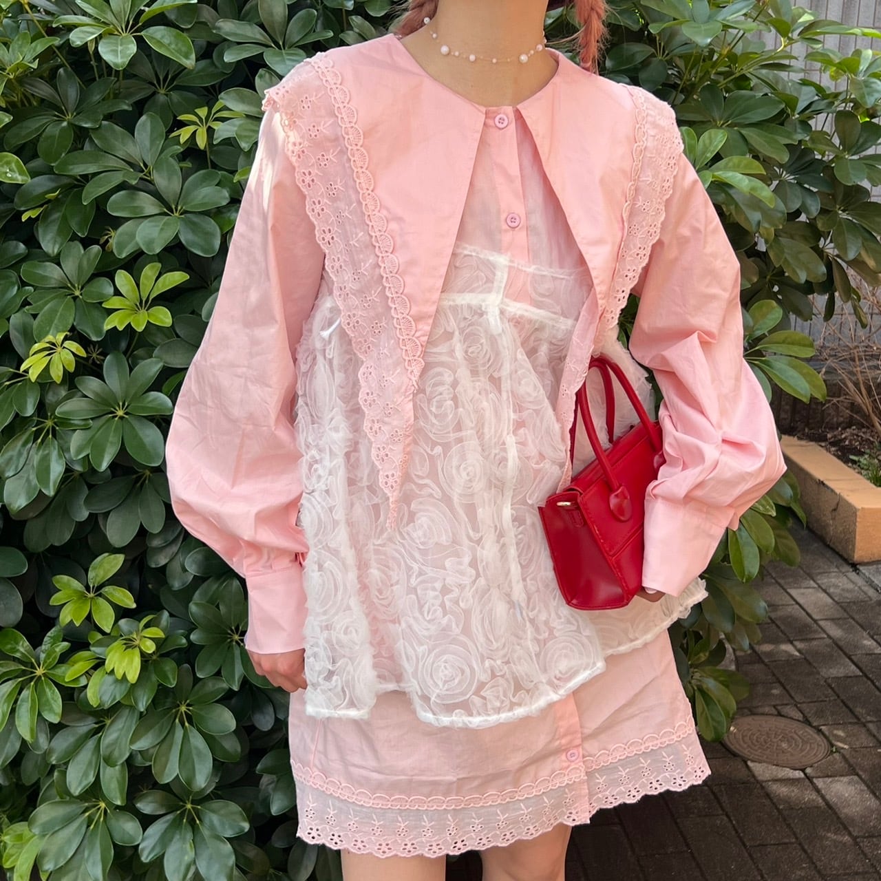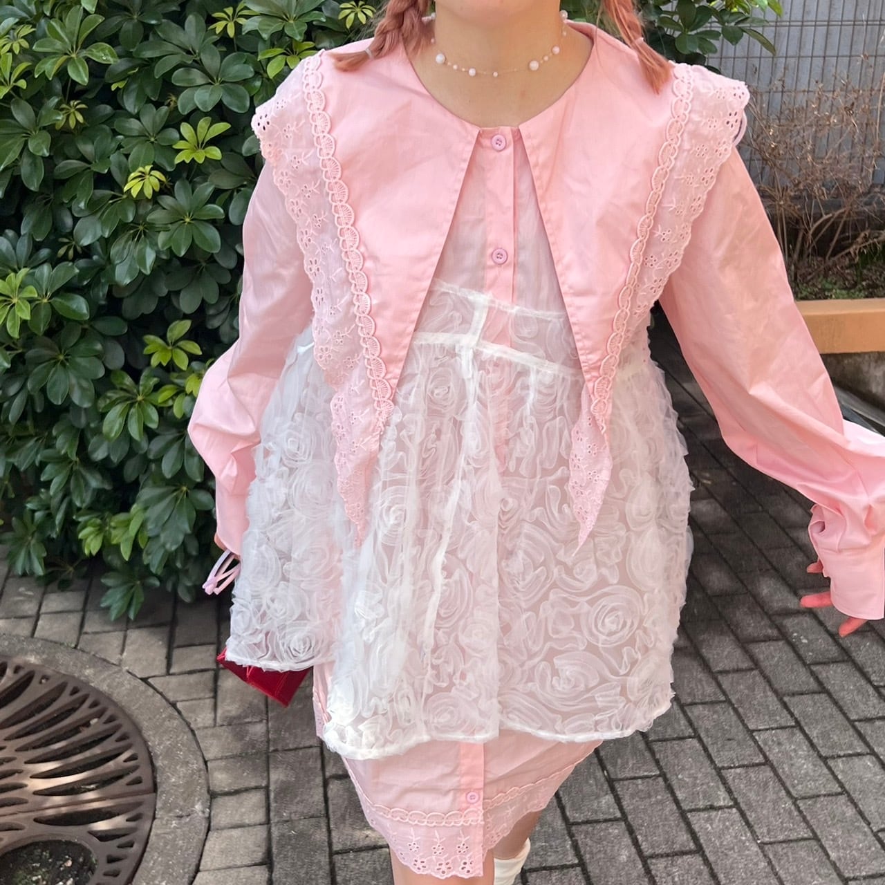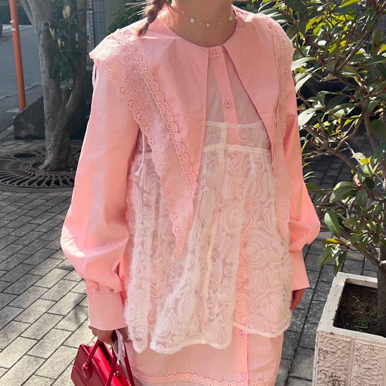 ビッグカラーリブレースロングブラウス_LN02676