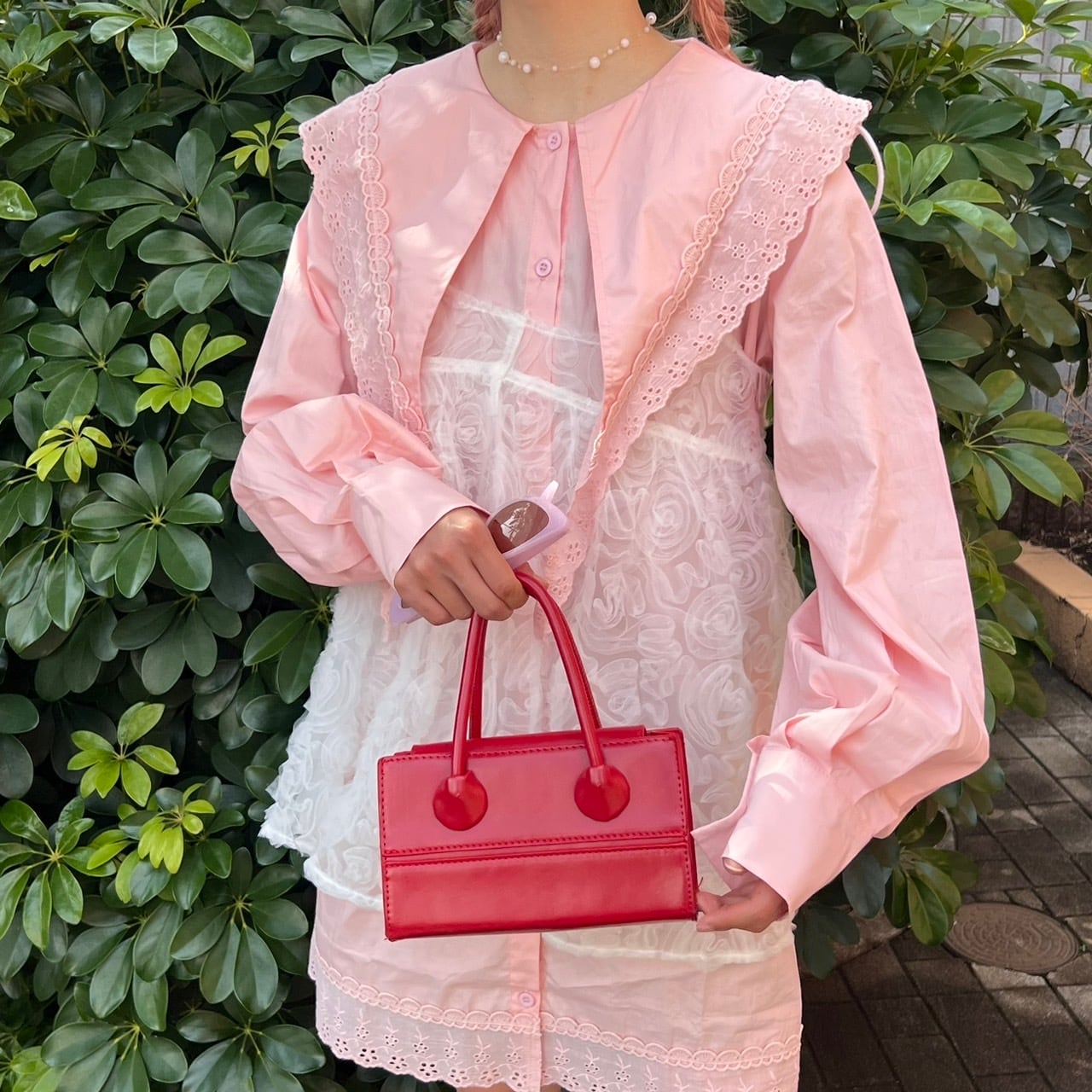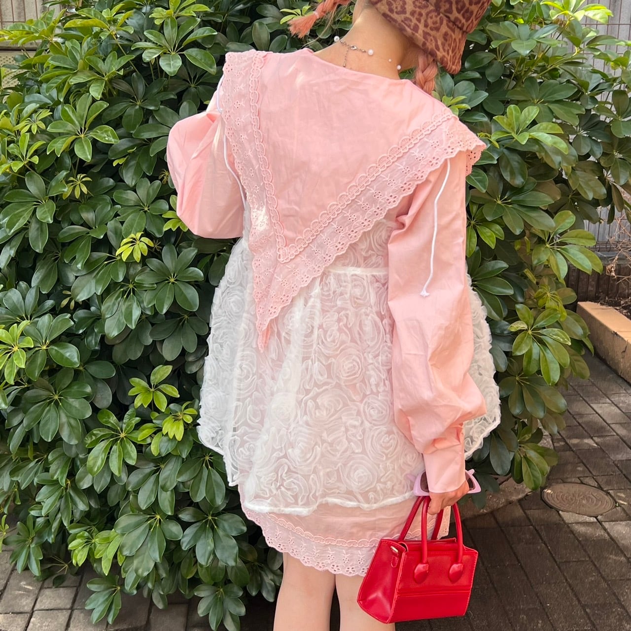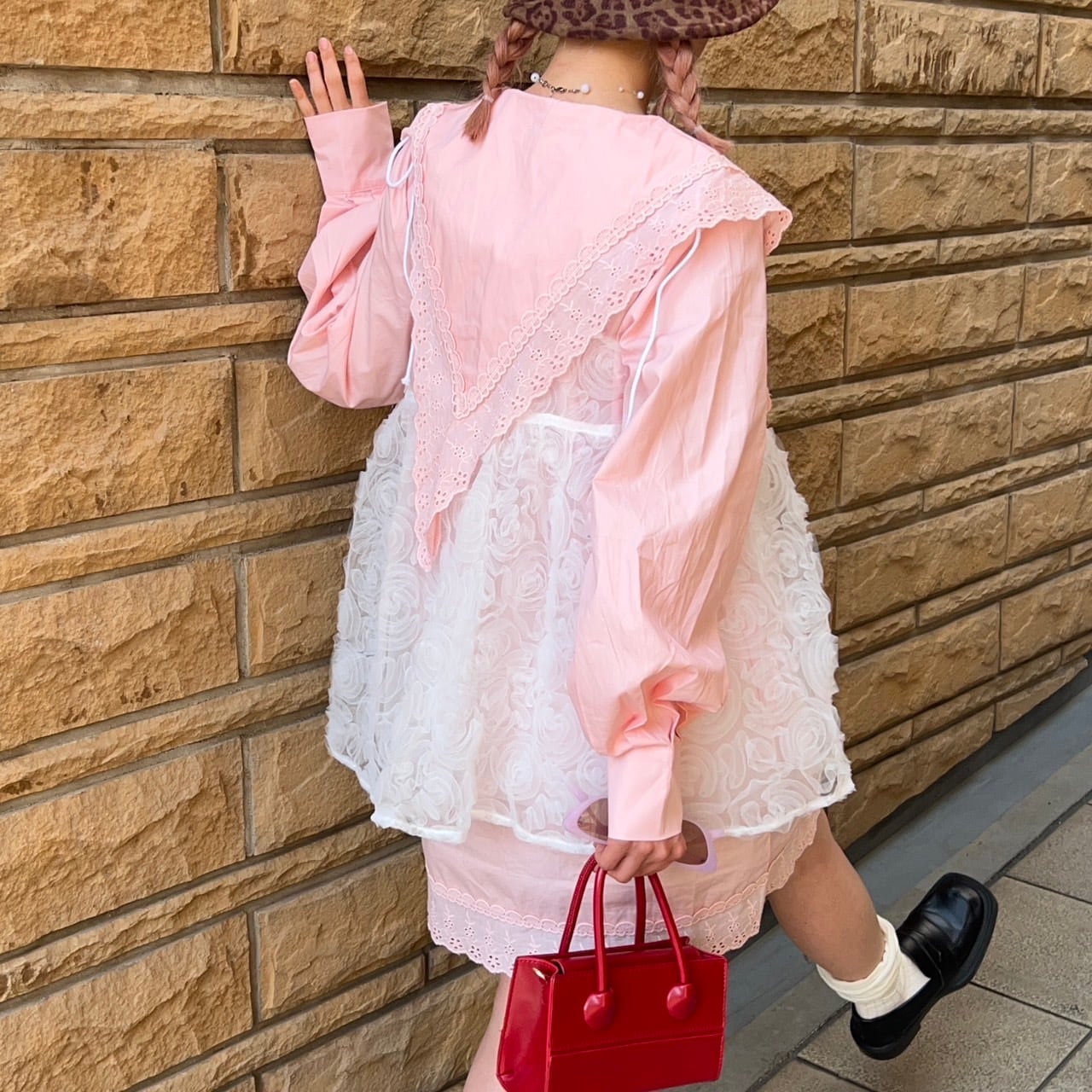 ビッグカラーリブレースロングブラウス_LN02676
