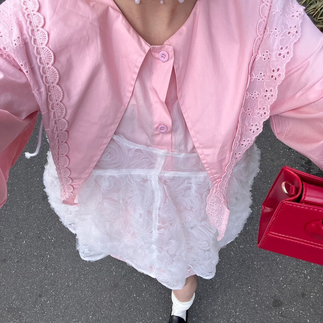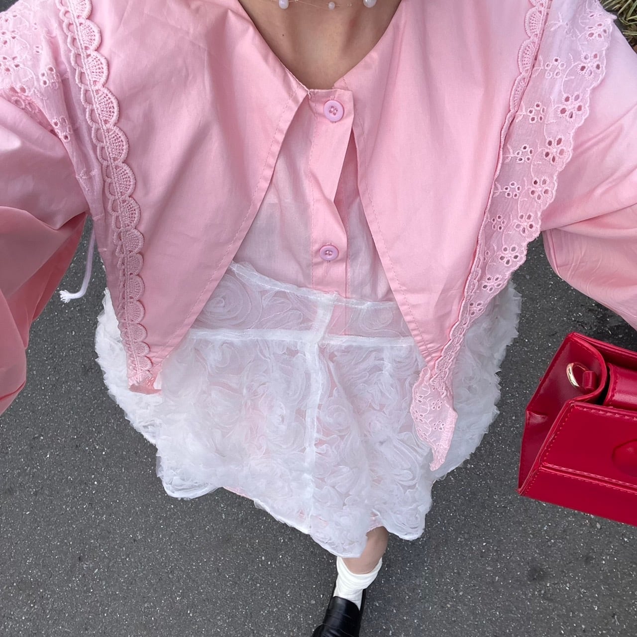 裾がレースになっていて、切り返しのデザインがおしゃれな1枚♡