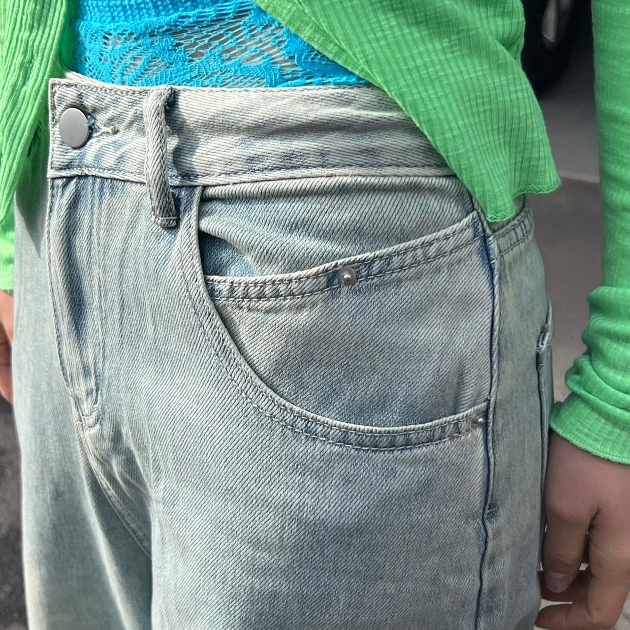M:総丈100cm、ウエスト68cm、ヒップ100cm、股下69cm、前股上32cm、わたり38cm