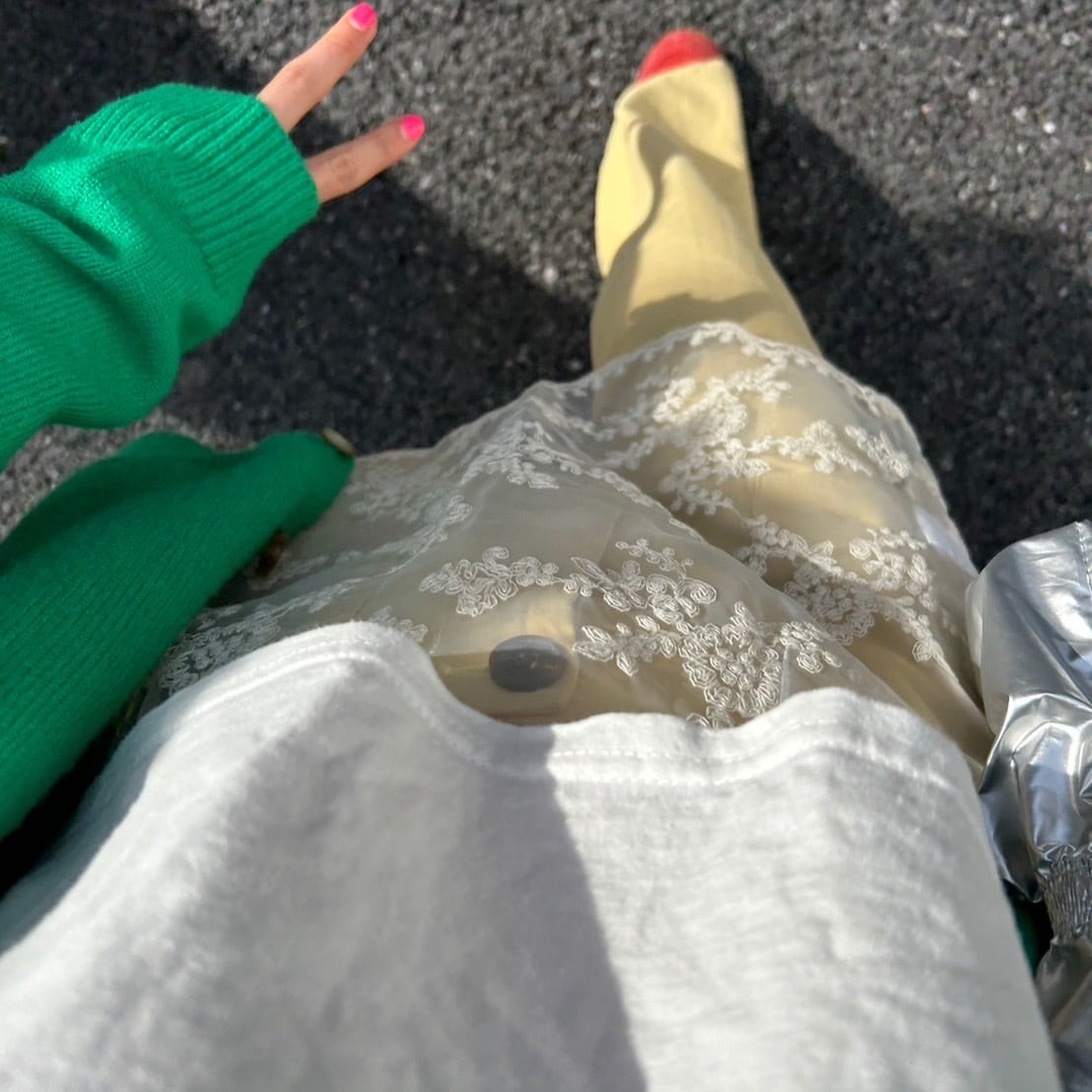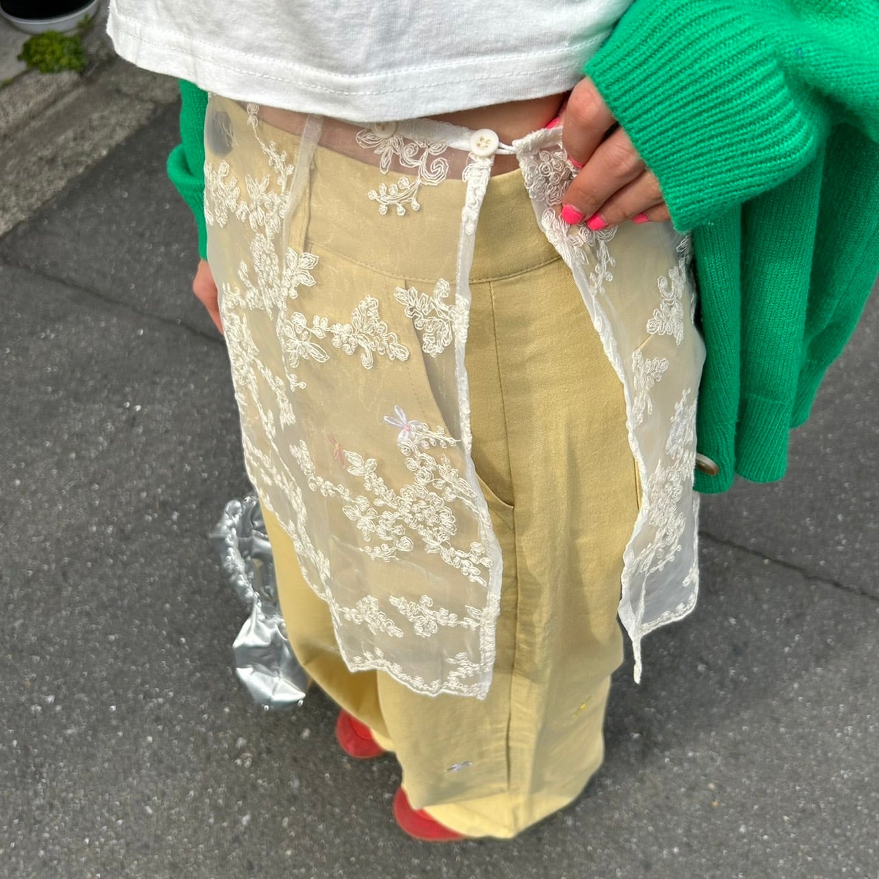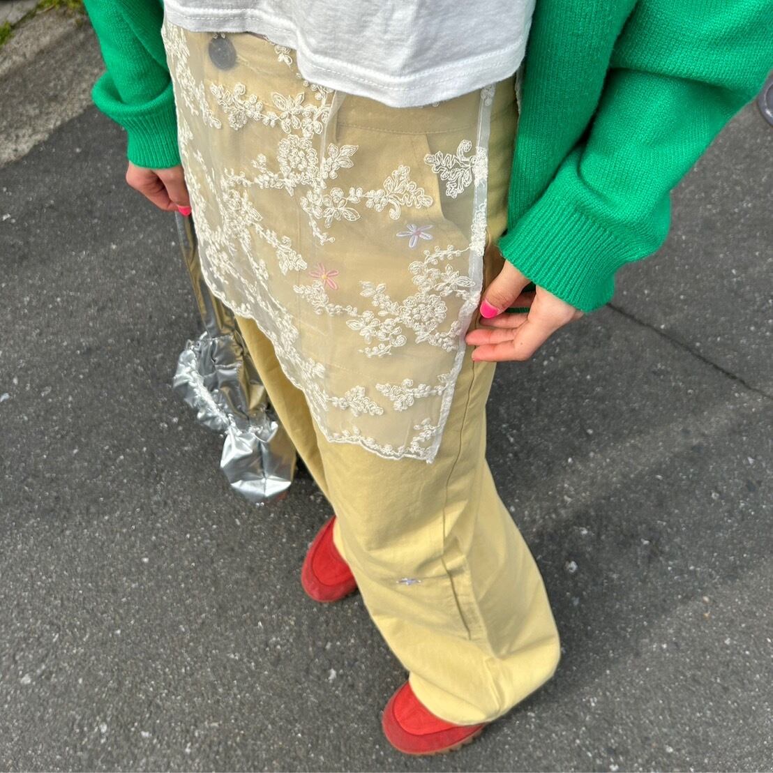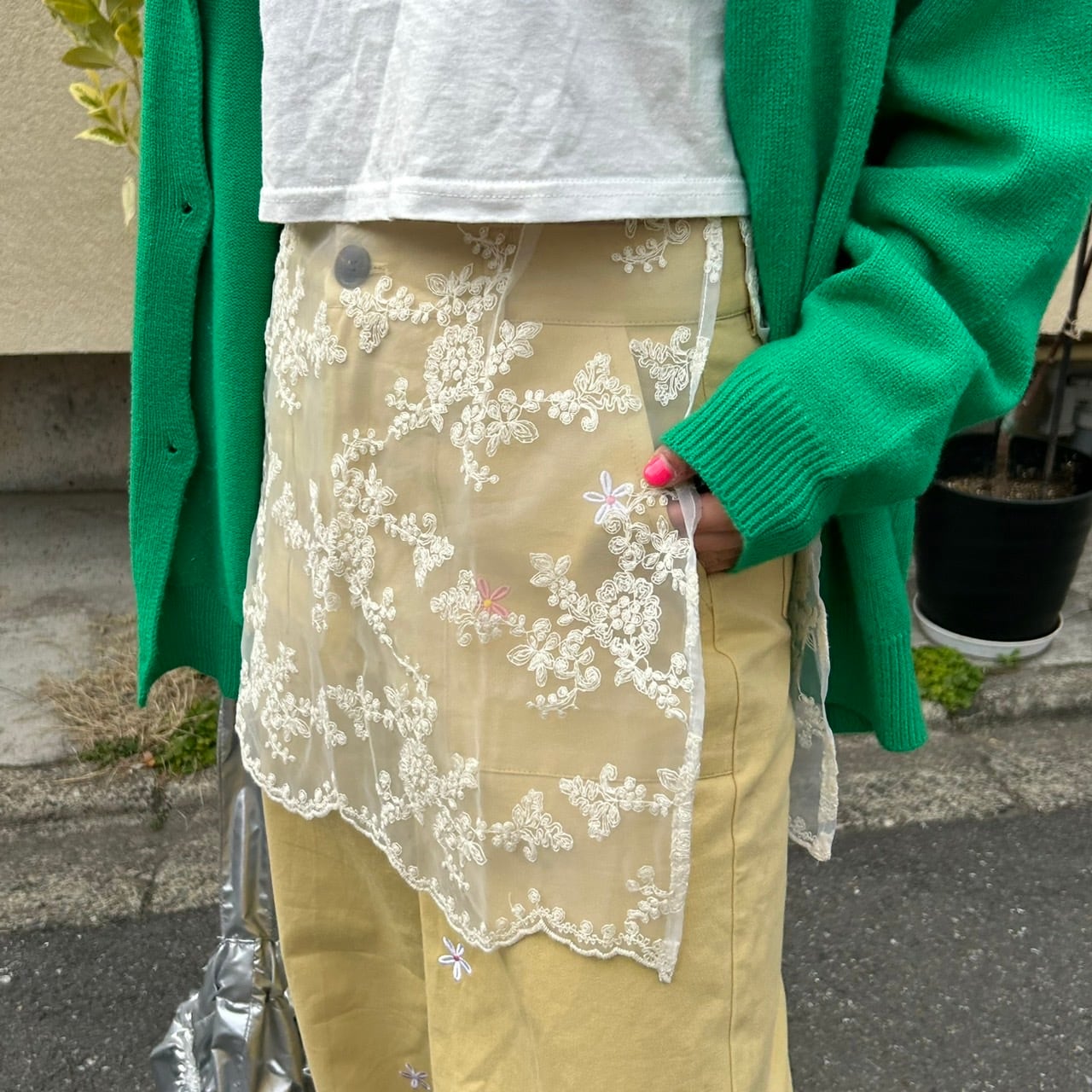 小花じゃない、おしとやかだけどゴージャスな、珍しいお花のステッチが特徴の巻きスカート♡