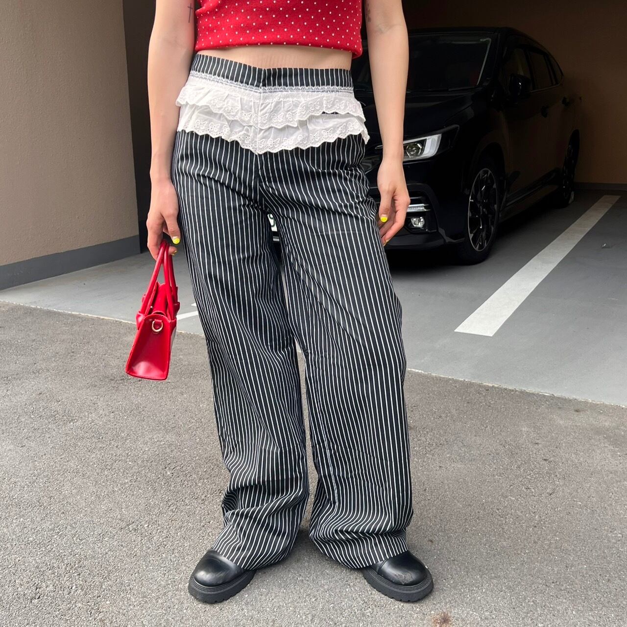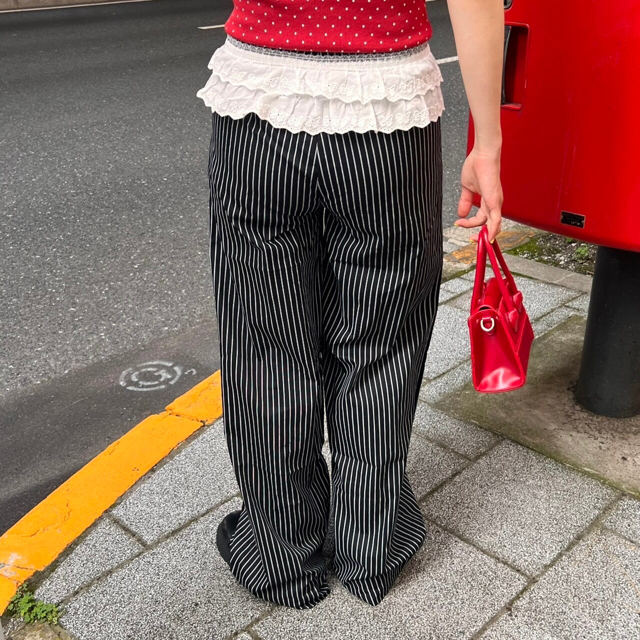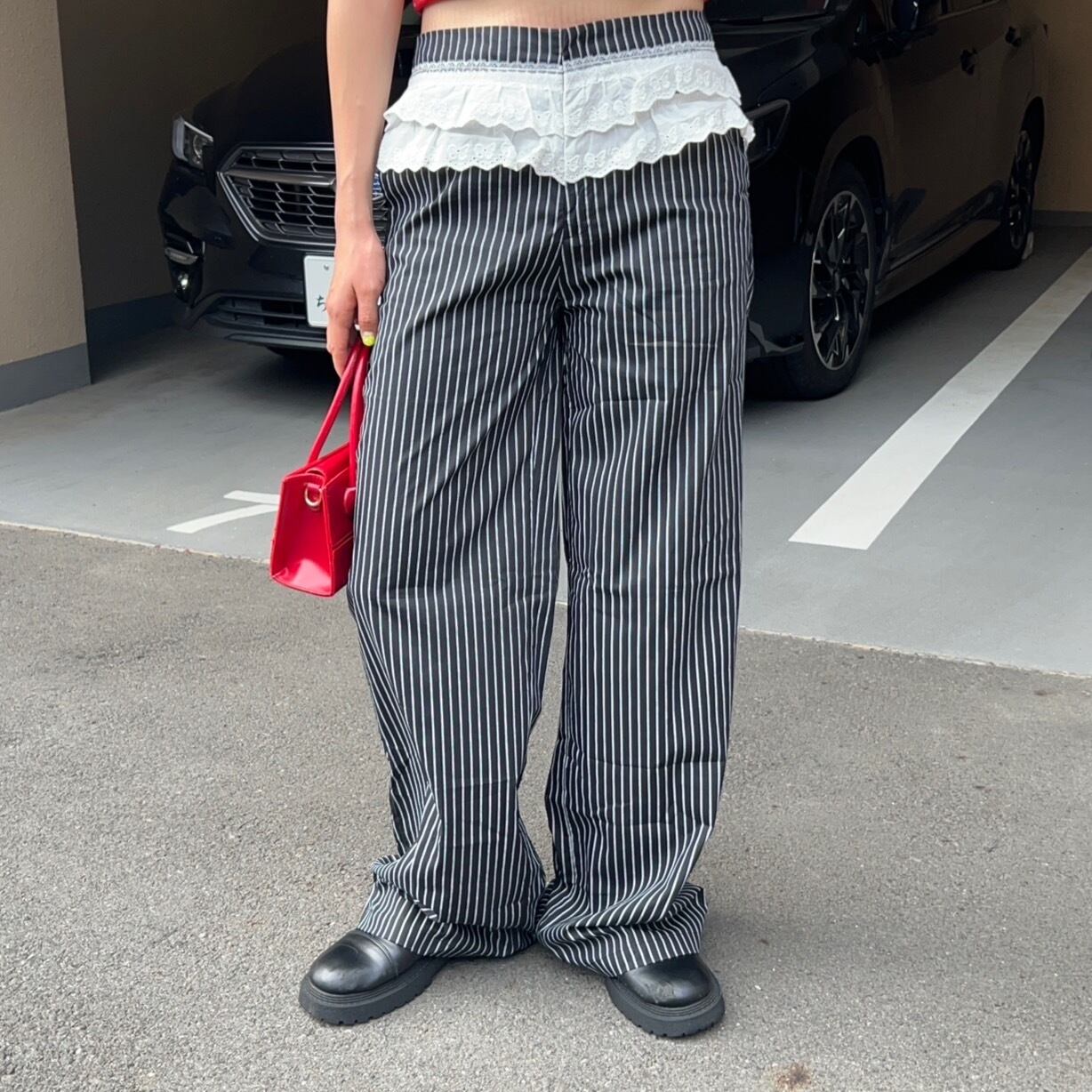 ダブルレースストライプローウエストワイドパンツ_LN02925