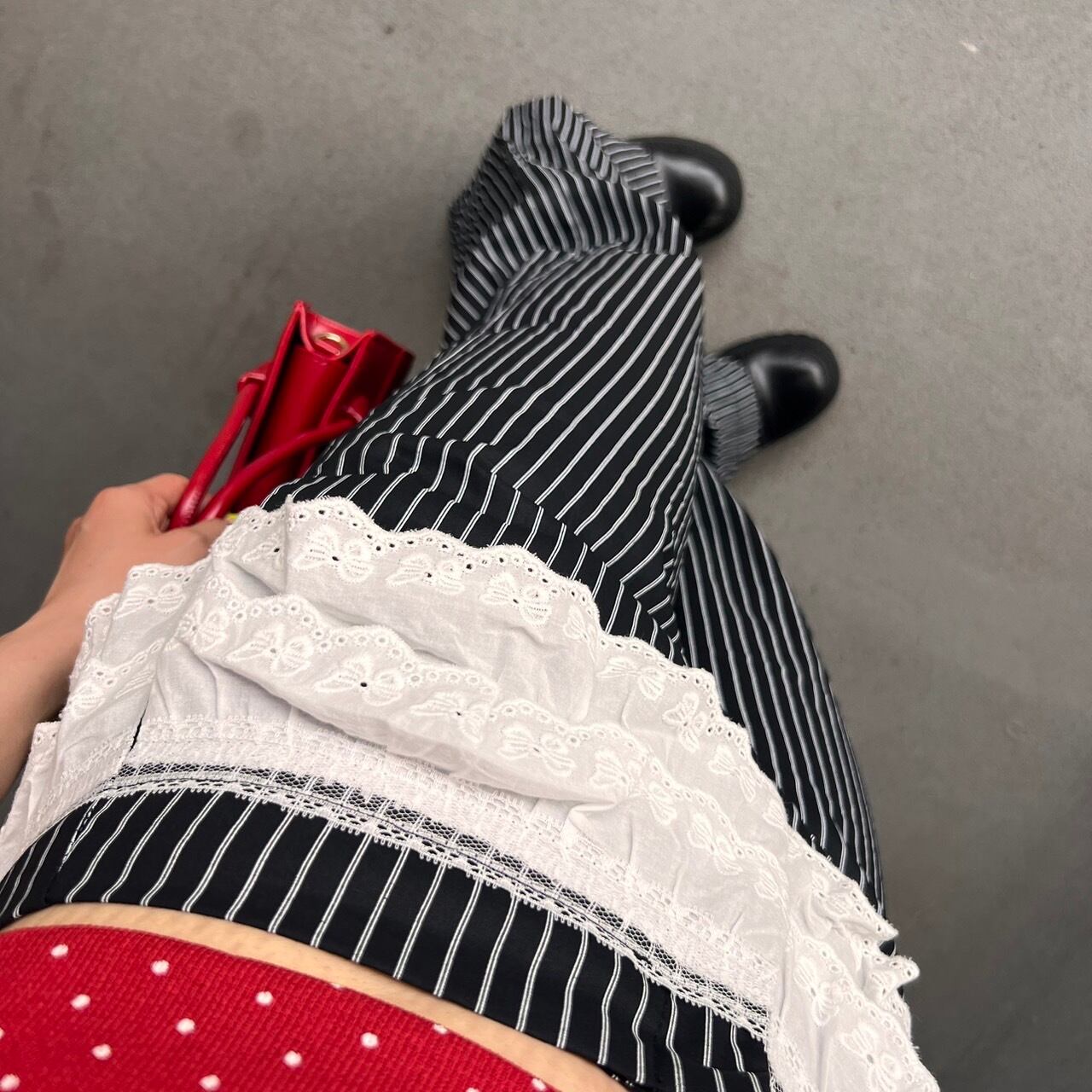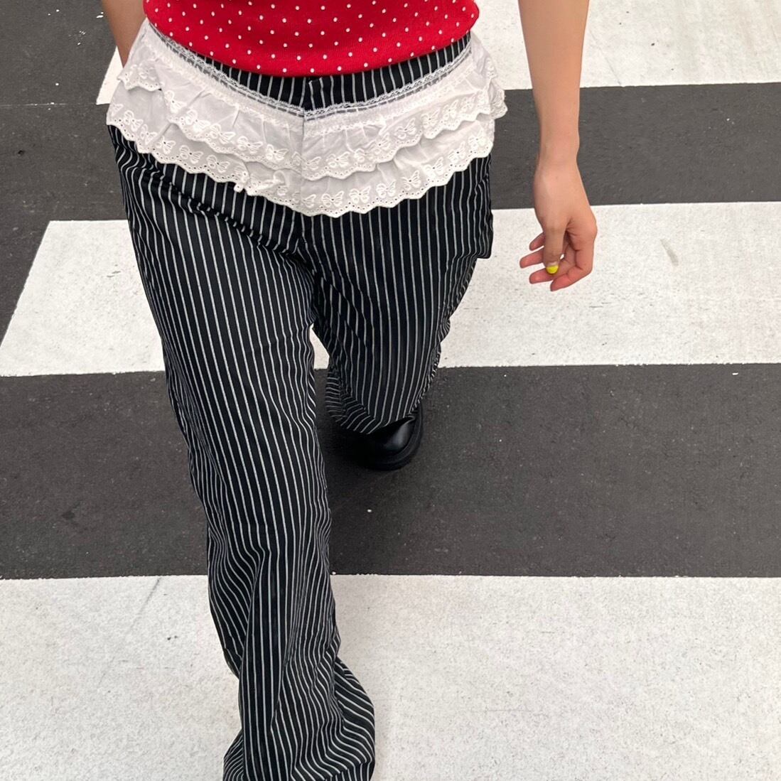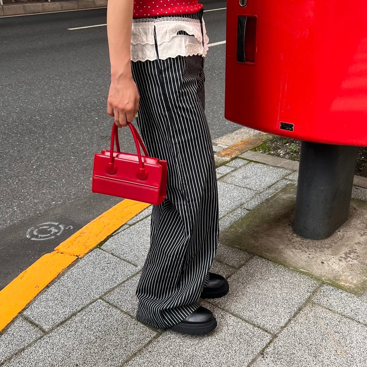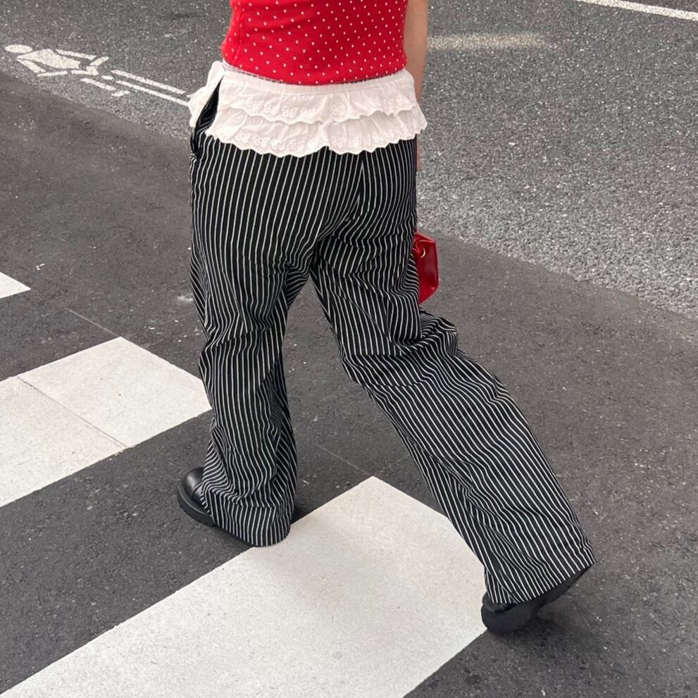 ダブルレースストライプローウエストワイドパンツ_LN02925
