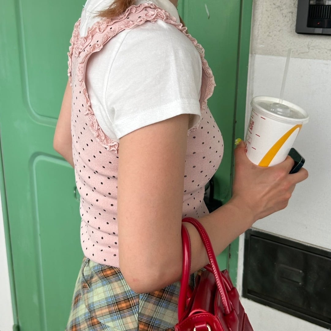 ドット柄フリルニットタンクトップ_LN02912