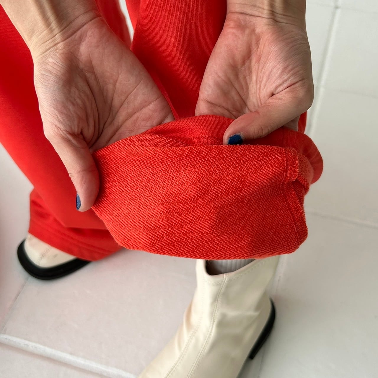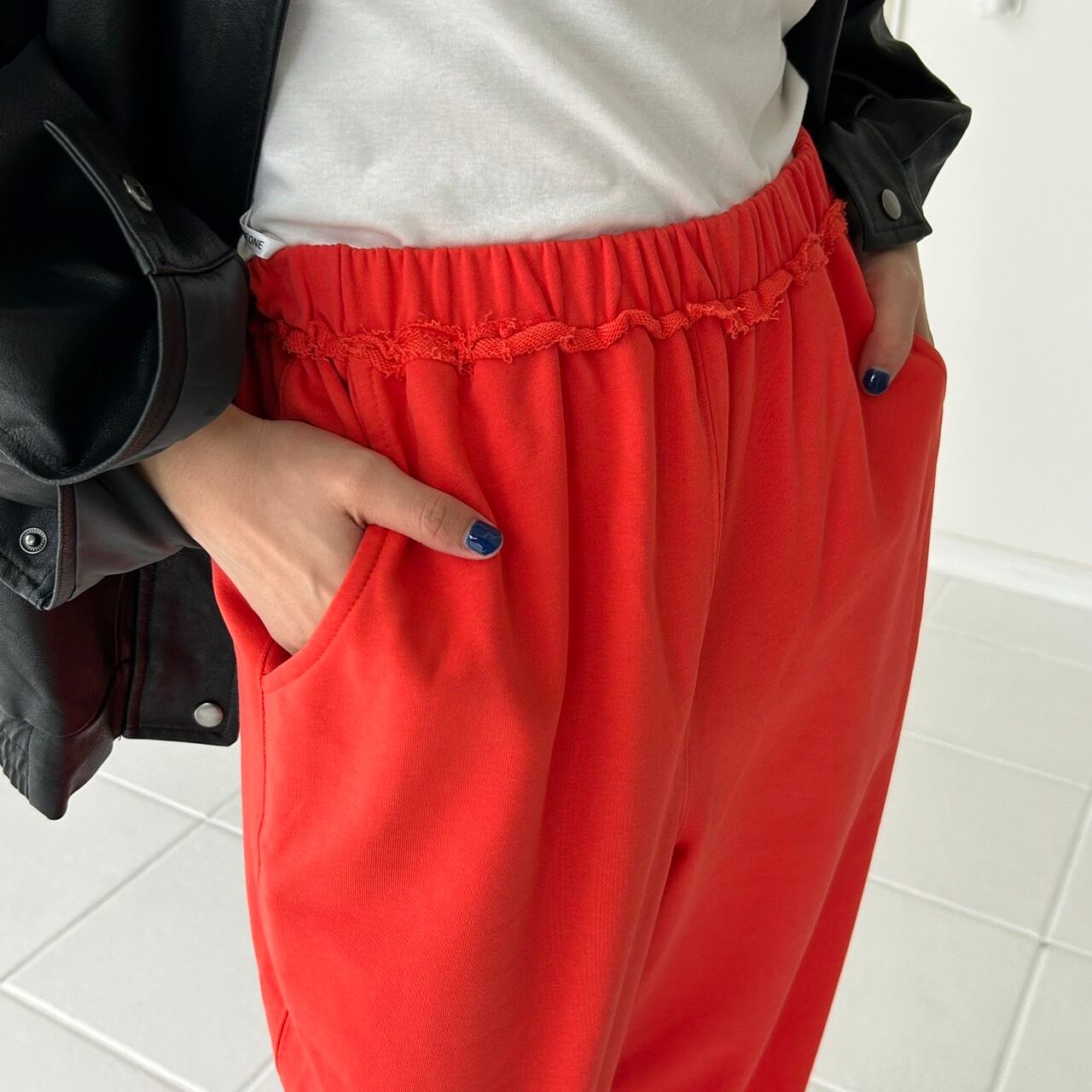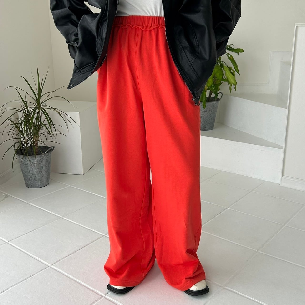 パキっとオレンジのスウェットパンツ!