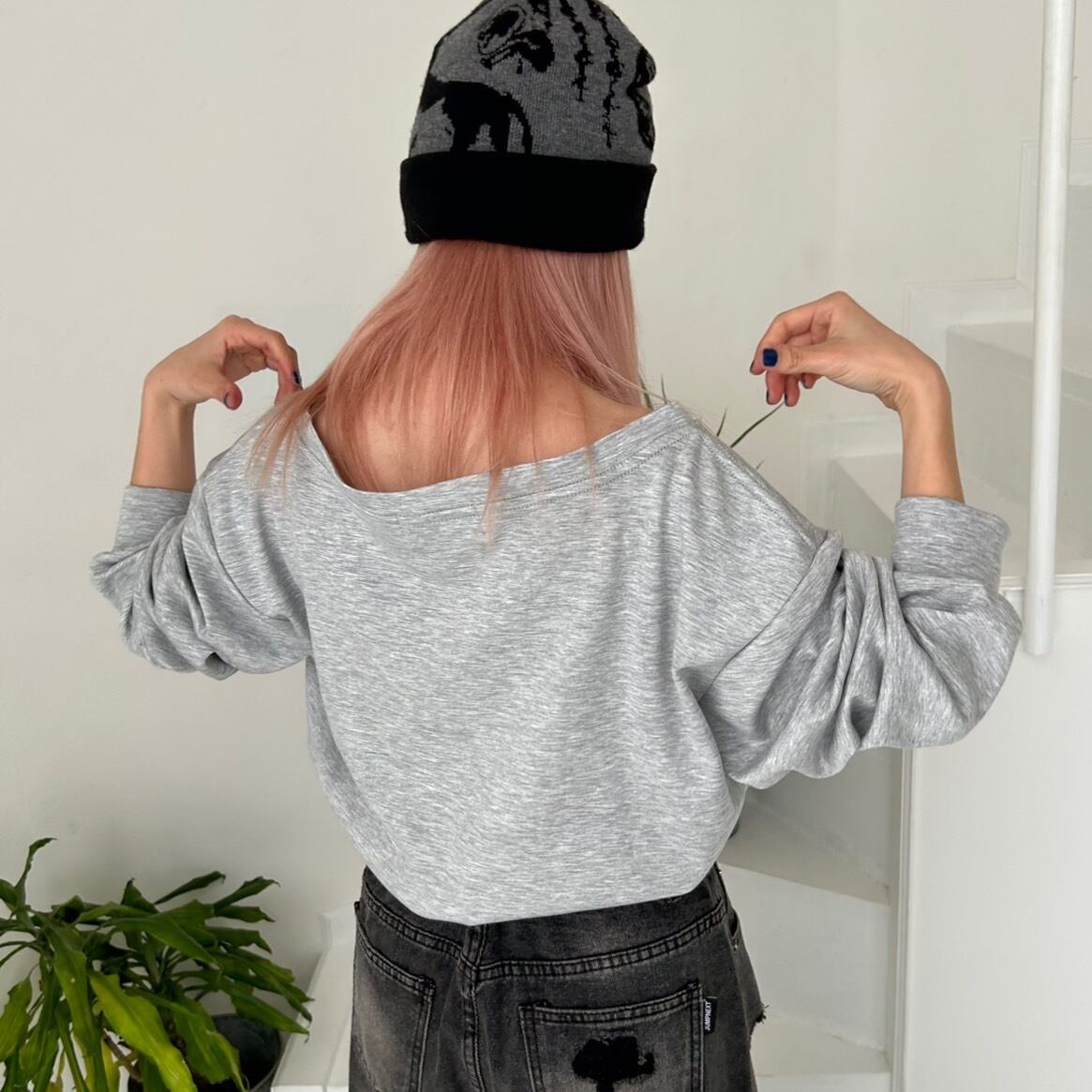 まるでロンTとスウェットの間のような素材感でカジュアルなのにお出かけ着に仕上がる1枚です。