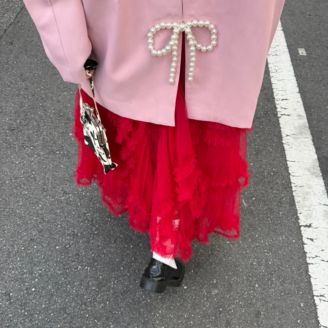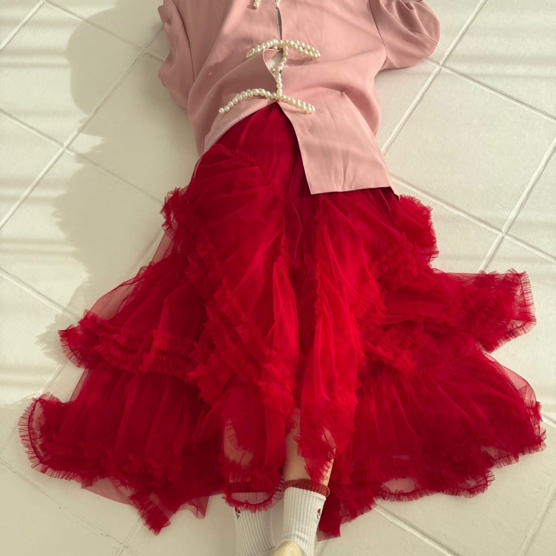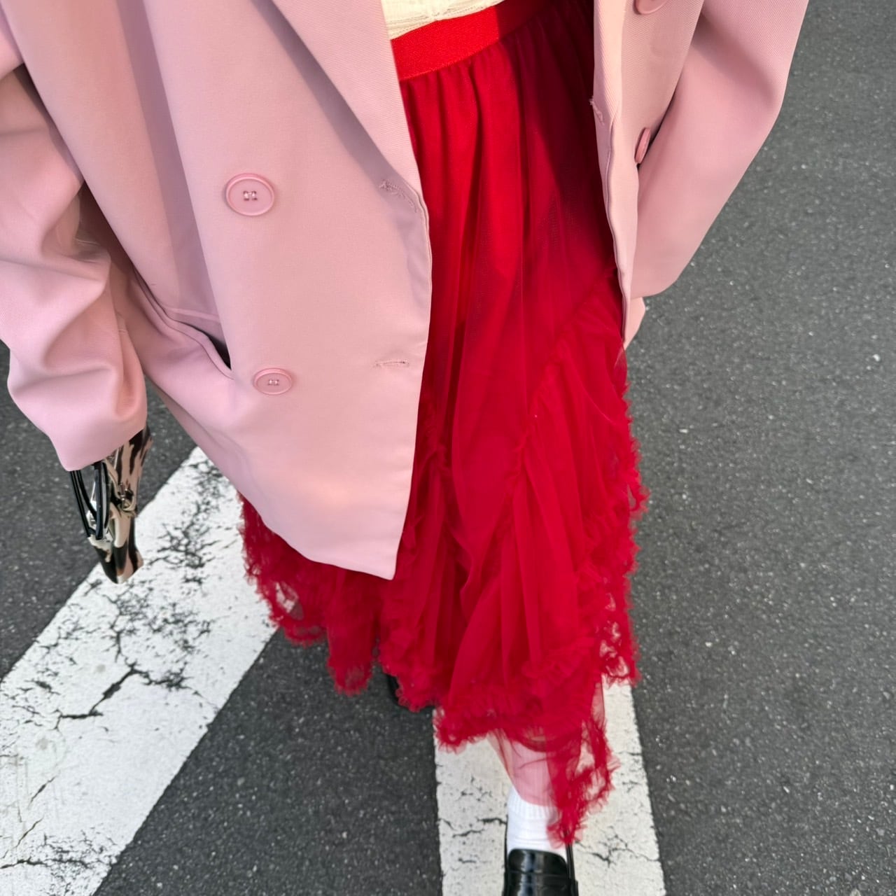 華やかな赤のティアードデザインが目を引くスカート❤︎