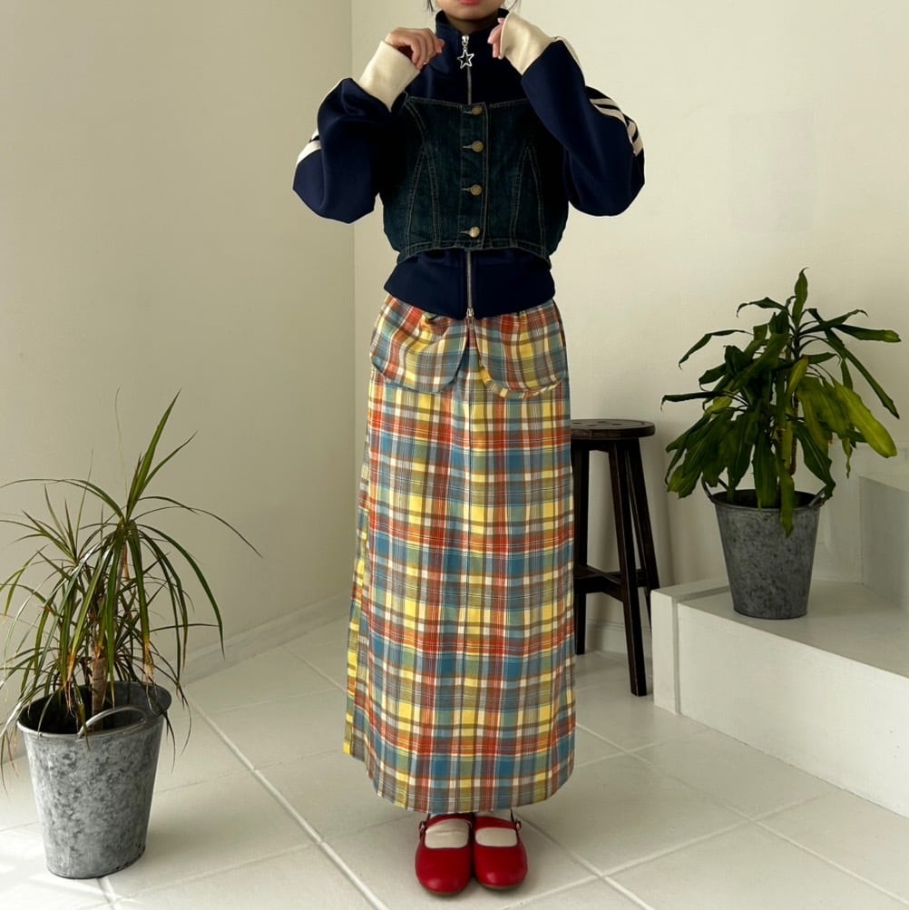 デザインはチェック柄が特徴的で、洗練された印象を与えるタイトシルエットが美しい1枚です。