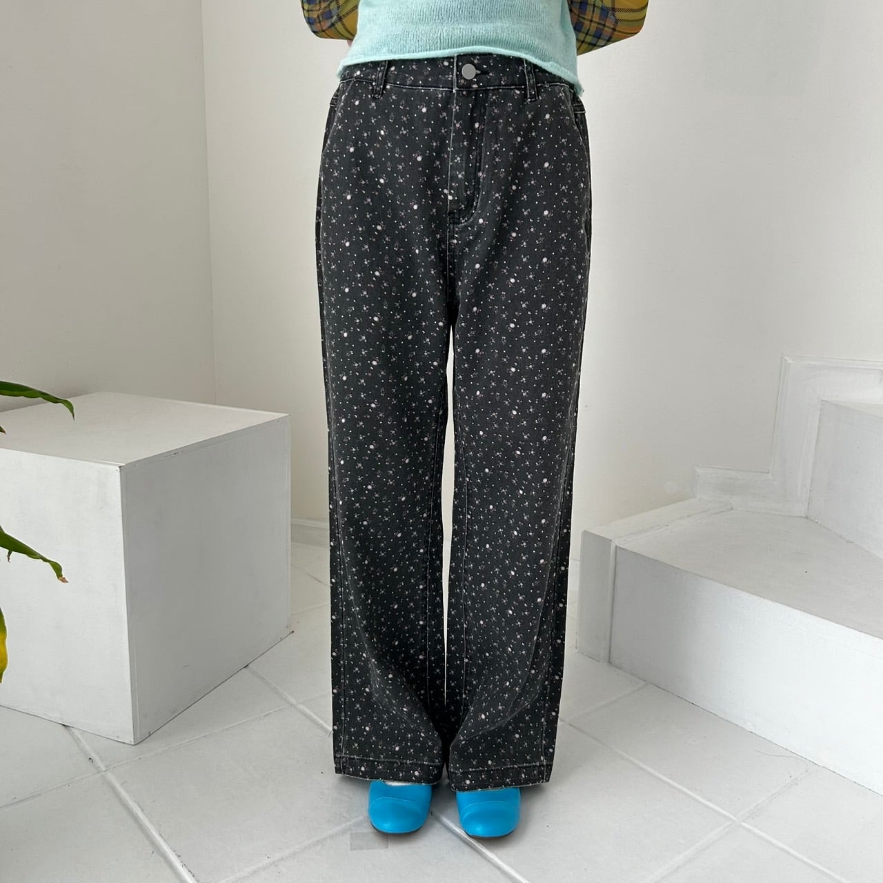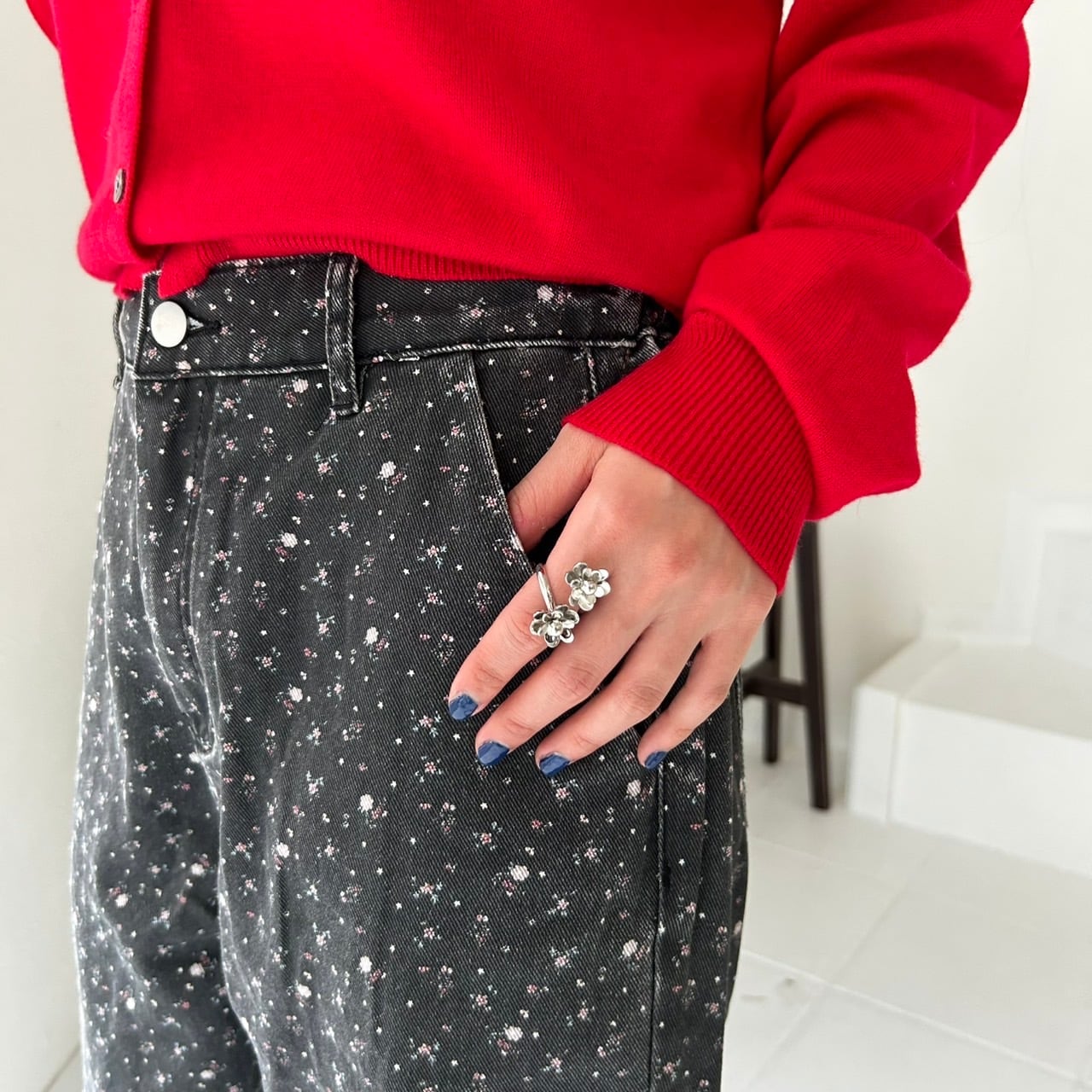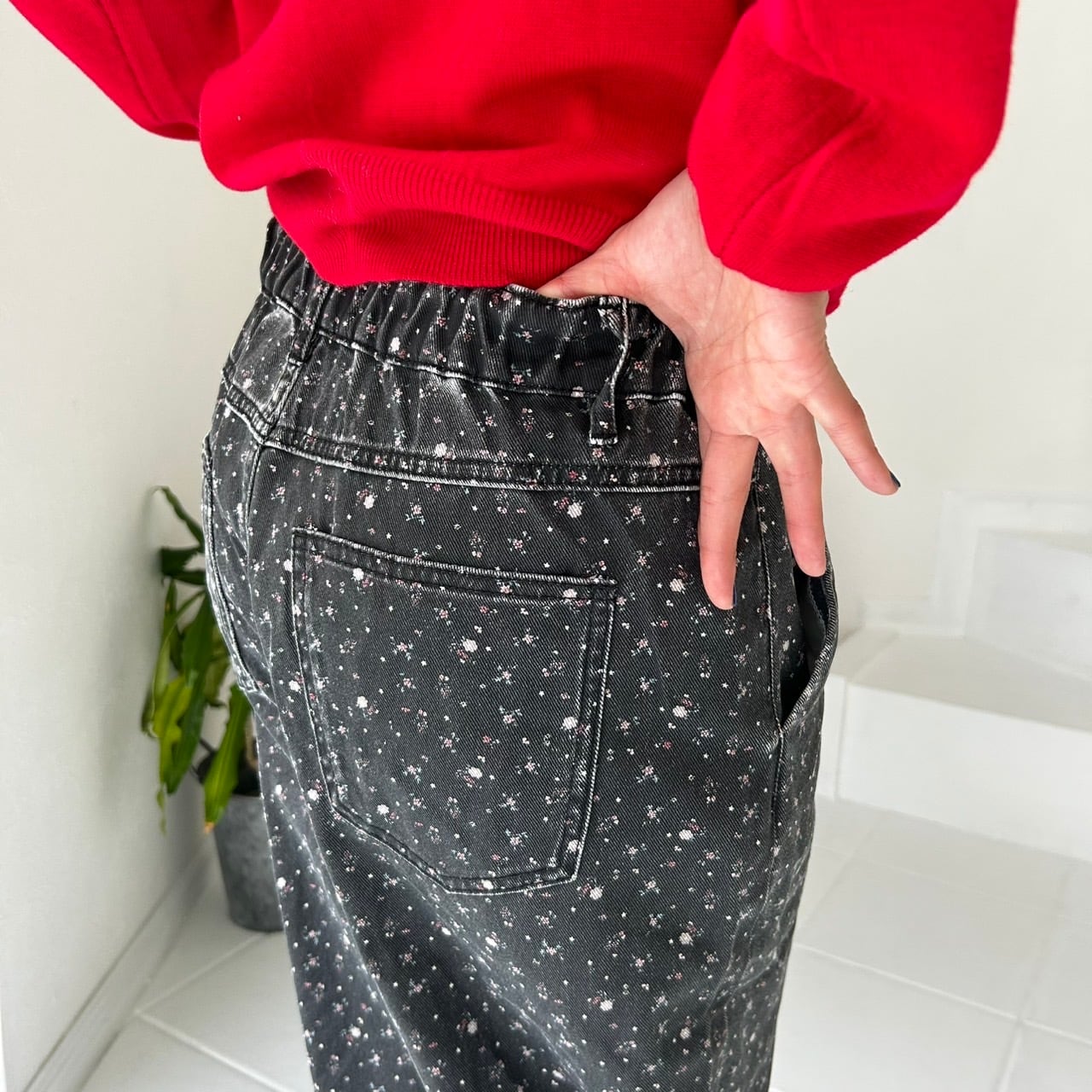 【プラスサイズ】春らしさを感じる小花柄が魅力のルーズデニムパンツ♡
